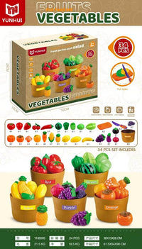 Kolorowy zestaw owoców o liczbie 34 elementów, idealny do zabawy w kuchni dla dzieci i nauki rozpoznawania owoców. Zestaw wspiera kreatywność i wyobraźnię podczas przygotowywania fikcyjnych przekąsek oraz eksploracji różnych akcesoriów kulinarnych.