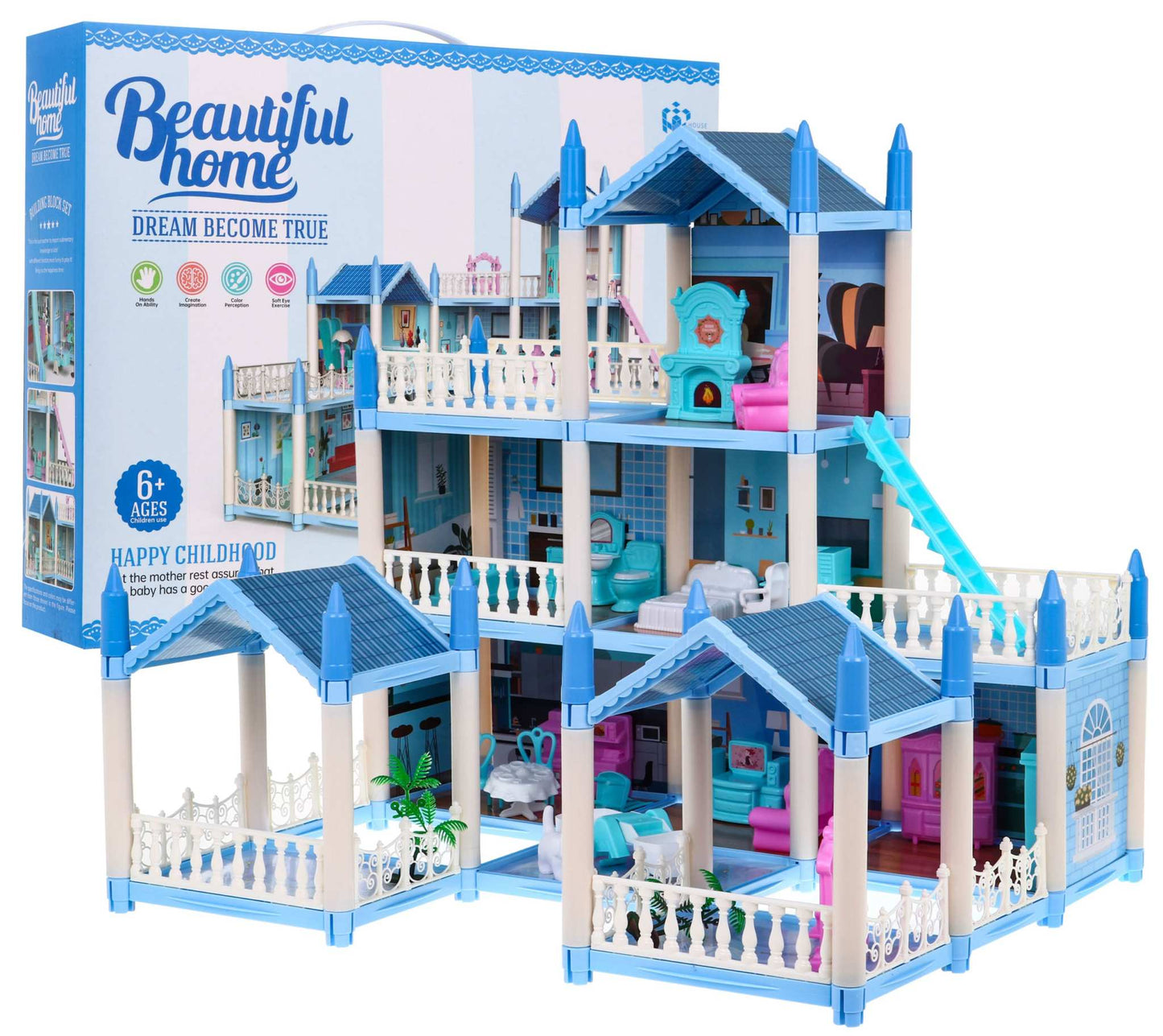 Domek Dla Lalek Trzypiętrowy Z Wyposażeniem Dla Dziewczynek