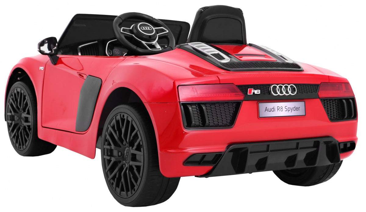 Audi R8 Spyder na akumulator w intensywnym czerwonym kolorze od Miniki to marzenie młodych kierowców. Realistyczny design, bezpieczna obsługa i mnóstwo emocji za kierownicą sprawiają, że każda zabawa to prawdziwa przygoda na wyobraźnię i motorykę dziecka. Dzięki panelowi audio z radiem FM i MP3 oraz LED-owemu oświetleniu, mali kierowcy mogą czerpać dodatkowy realizm podczas jazdy.