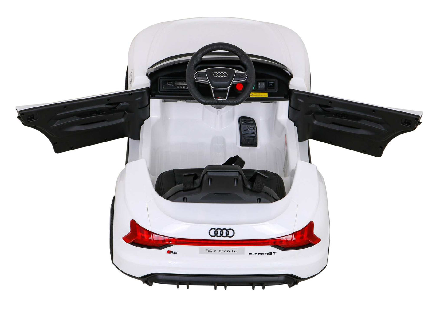 Minika prezentuje Audi RS E-Tron GT na akumulator dla dzieci — biały, z pilotem i napędem 4x4. To realistyczna, bezpieczna zabawka, która łączy sportowy charakter z intuicyjną obsługą. LED-owe światła dodają autentycznego wyglądu, a panel audio z USB/MP3/Bluetooth/AUX oraz radio umilą każdą podróż. Wyposażenie obejmuje pasy bezpieczeństwa i przycisk STOP dla pewnej jazdy, a miękkie koła EVA zapewniają płynny ruch nawet na mniej gładkich nawierzchniach.