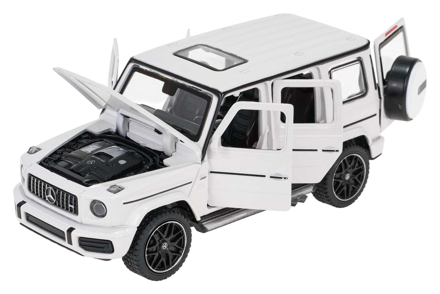 Poznaj precyzyjną replikę 1:32 Mercedes-Benz AMG G63 od RASTAR. Biała metalowa karoseria, solidna konstrukcja i realistyczny moduł dźwiękowy czynią z tego modelu doskonały dodatek do każdej kolekcji oraz imponujący punkt ekspozycji. Idealny dla kolekcjonerów, pasjonatów motoryzacji i prezentów.