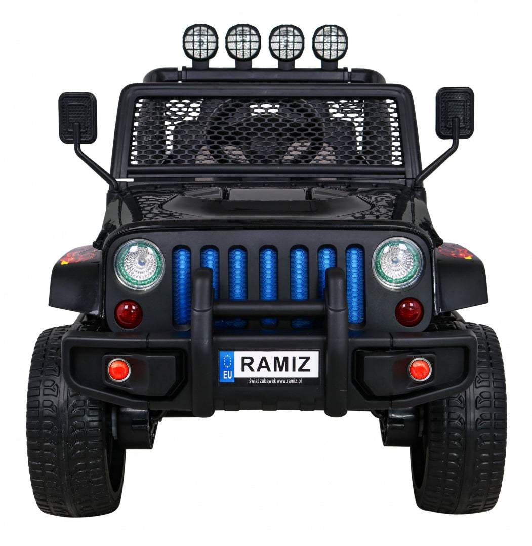 - Podświetla jazdę nocą LED-ami przednimi i na pałąku, z podświetlanym grillem.