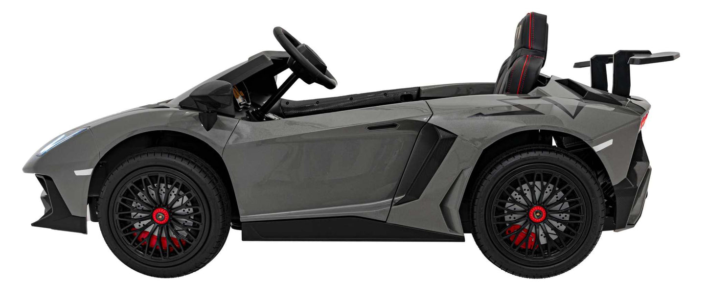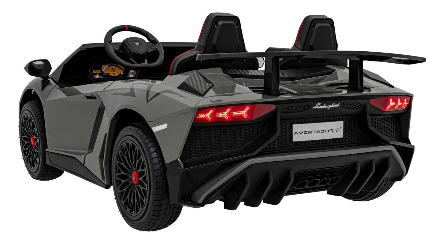 Poznaj Lamborghini Aventador SV na akumulator dla dwóch dzieci od Minika – pojazd łączący imponujący wygląd, moc i łatwość obsługi. Szary kolor oraz realistyczny design oddają charakter supersamochodu, a dwójka foteli i bezpieczna konstrukcja zapewniają wspólne przygody na świeżym powietrzu.