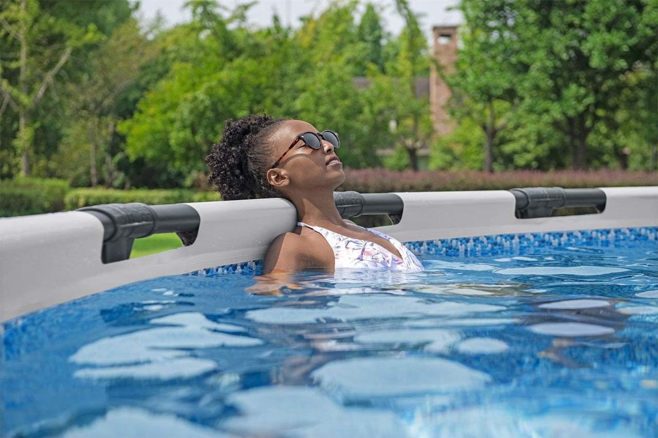 Odkryj Basen Stelażowy 20FT 610x132 cm SteelPro BESTWAY — solidność, łatwość montażu i letnie chłodzenie dla całej rodziny. Dzięki wytrzymułemu stelażowi Steel Pro MAX i powłoce PVC DURAPLUS™, basen o wymiarach 610 x 132 cm łączy trwałość z estetyką mozaikowej grafiki, tworząc centralne miejsce odpoczynku w ogrodzie.