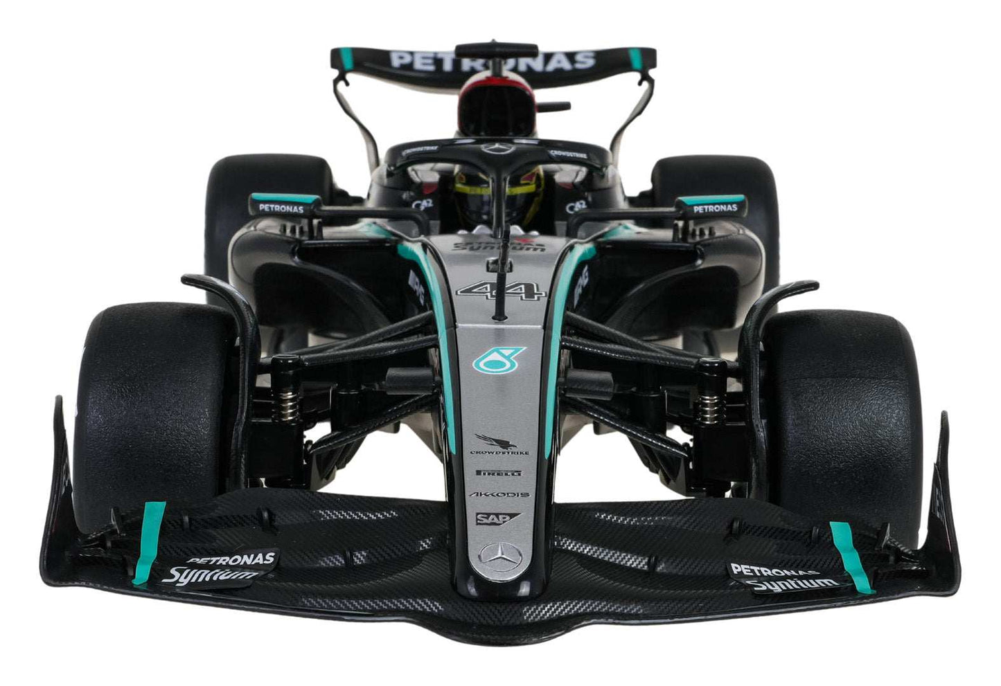 - Odwzorowuje autentyczne linie Mercedes-AMG F1 W15 E Performance w skali 1:12, zapewniając imponujące detale.