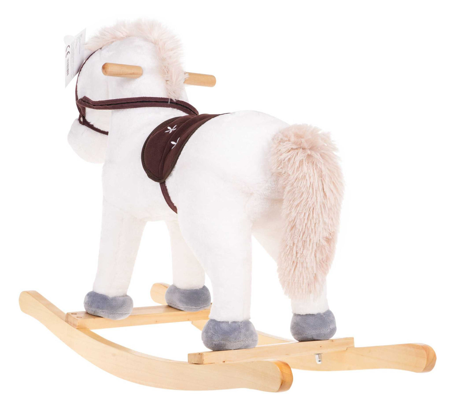 Odkryj radosną zabawę z Konikiem Jednorożcem na biegunach od Minika. Ten biały, miękki konik na drewnianych płozy łączy przyjazny materiał z interaktywnymi odgłosami, tworząc bezpieczną, angażującą zabawę dla Twojego malucha. Stabilna konstrukcja wspiera koordynację ruchową i równowagę podczas kołysania, pobudzając wyobraźnię i eksplorację świata. Dzięki miękkiemu, przyjemnemu w dotyku materiałowi i zaokrąglonym krawędziom zabawa jest komfortowa nawet podczas długich sesji.