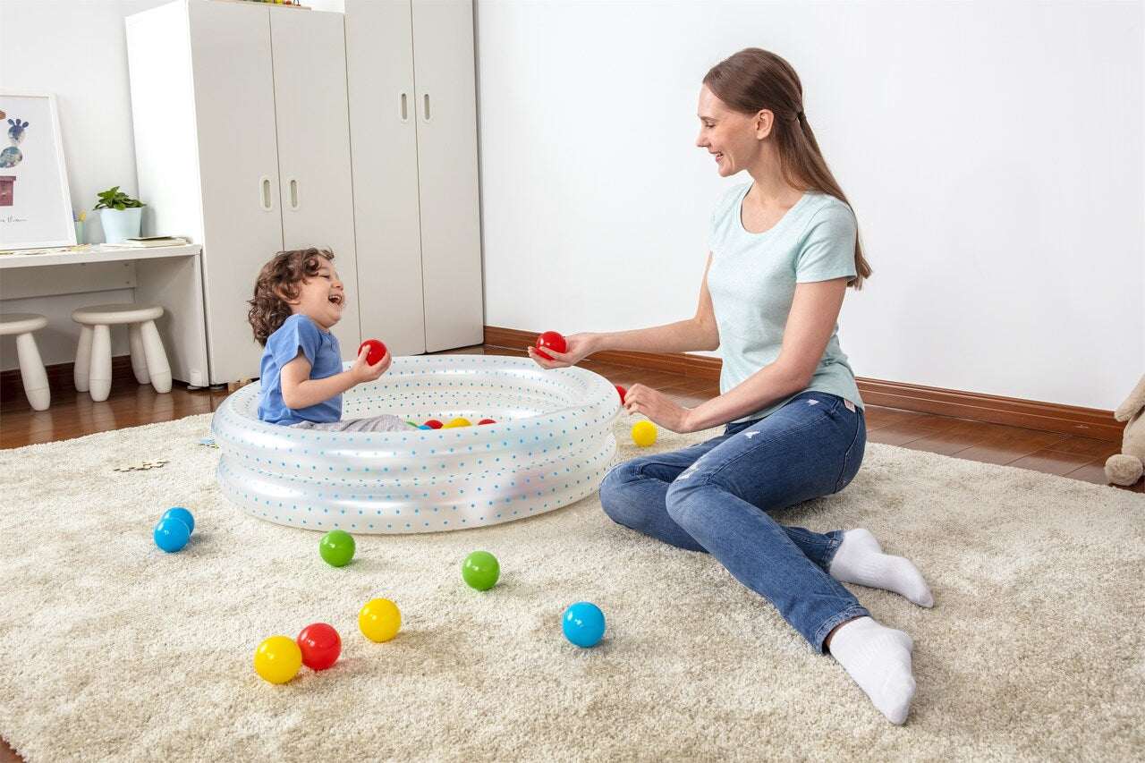 Care/fit: Rozmiar 91 x 20 cm, pojemność 73 litry. Dla dzieci od 2 lat, łatwy do napompowania i zdemontażu, idealny do zabawy w domu, ogrodzie i podczas wyjazdów.
