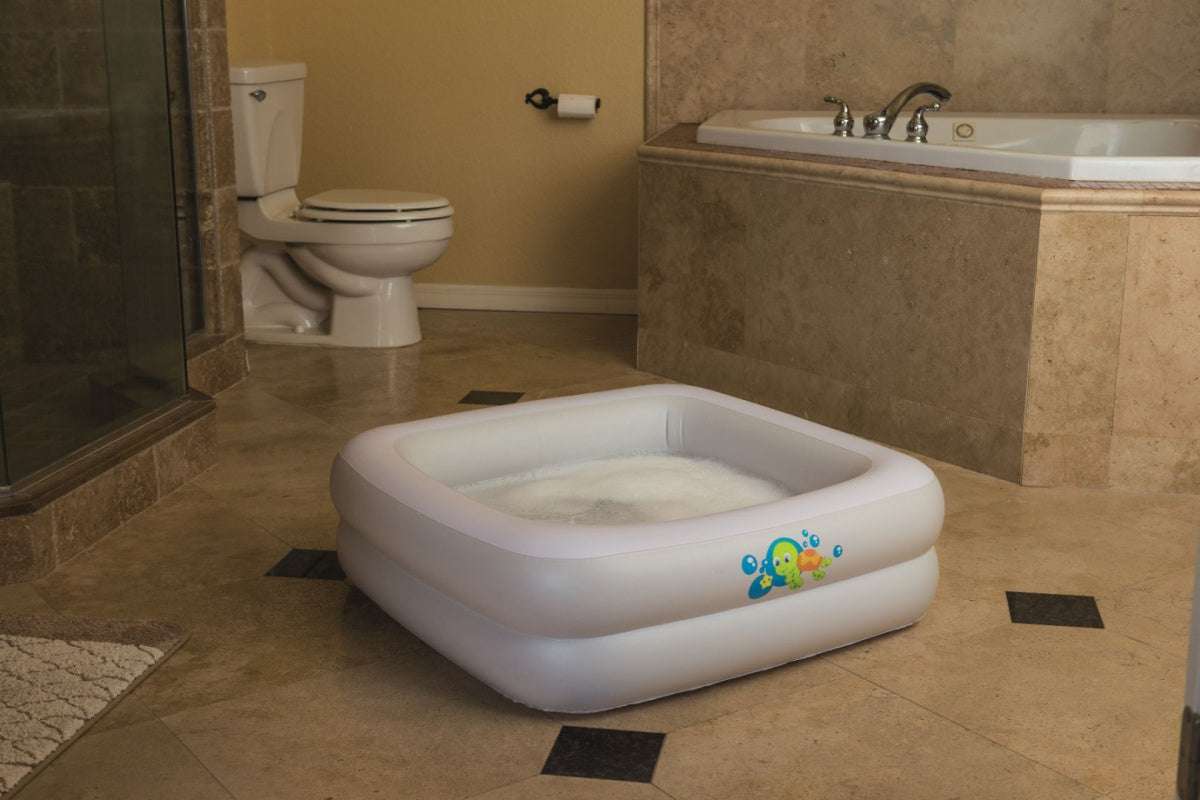 - Ułatwia kąpiel i zabawę dzięki dmuchanemu dnu, które amortyzuje ruch i zapewnia miękką podstawę.