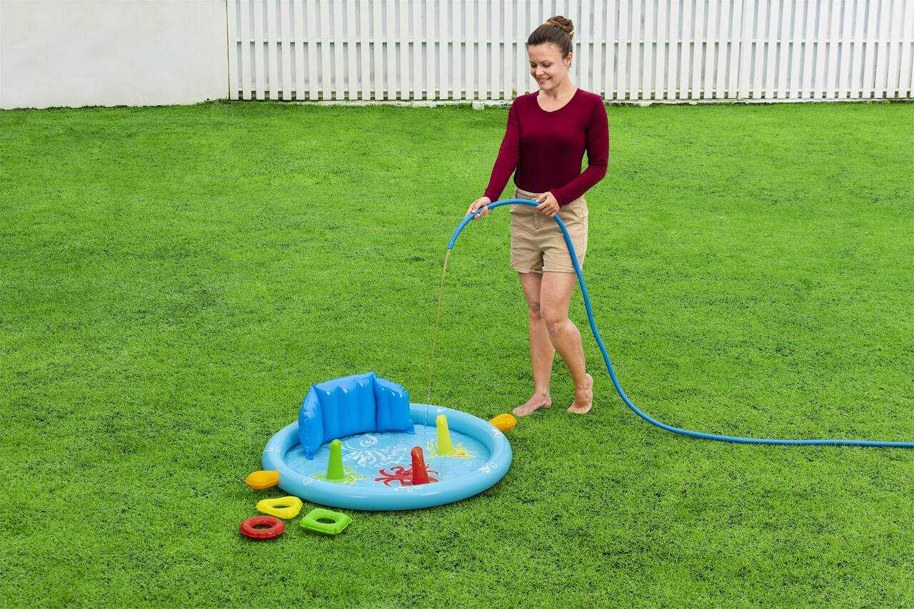 Care/fit: Basenik przeznaczony dla dzieci od 6 miesiąca; wymiary 115 x 89 x 76 cm; zalecane napełnienie 31 l; łatwość obsługi dzięki szybkim zaworom i łatwe czyszczenie.