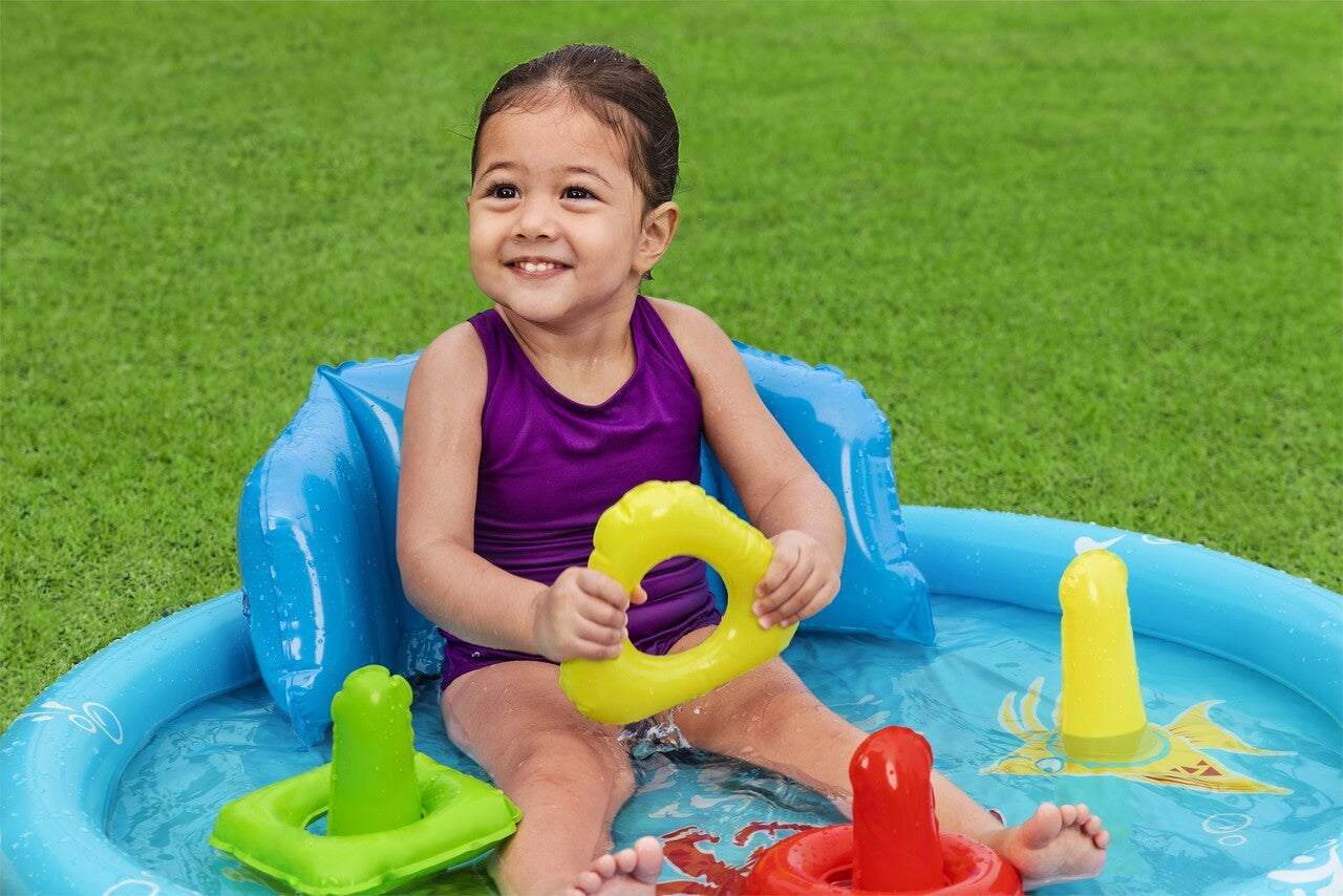 Minika prezentuje dmuchany basenik Bestway z daszkiem o wymiarach 115 x 89 x 76 cm — idealny dla dzieci od 6 miesięcy. Lekka, bezpieczna konstrukcja zapewnia miejsce na wodne zabawy, ochronę przed słońcem i rozwój koordynacji ruchowej w przyjaznym otoczeniu.