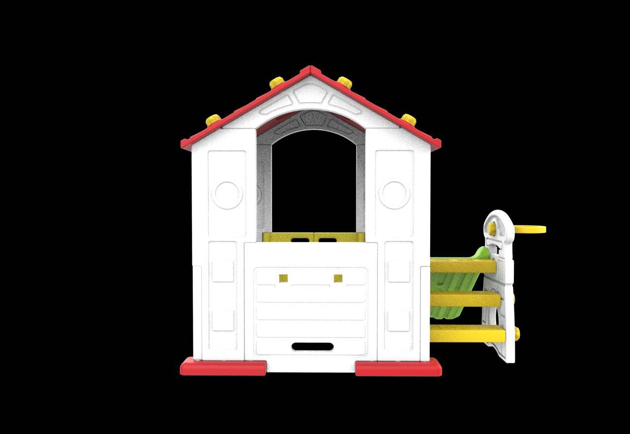 Przygotuj dziecko na godziny radosnej zabawy na świeżym powietrzu dzięki Domek Ogrodowy 3w1 Dla Dzieci z Czerwonym Dachem, Zjeżdżalnią i Koszykówką. Ten kompaktowy zestaw od Minika łączy domowy kącik zabaw z zjeżdżalnią i boiskowym fragmentem, tworząc bezpieczne, aktywne miejsce do odkrywania i rozwijania wyobraźni.