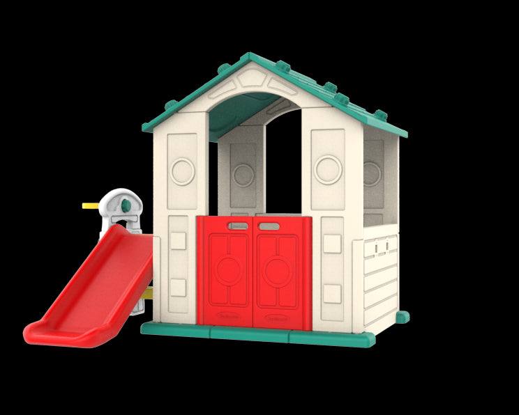 - Rozwija motorykę i kreatywność poprzez zjeżdżalnię i koszykówkę w zestawie.