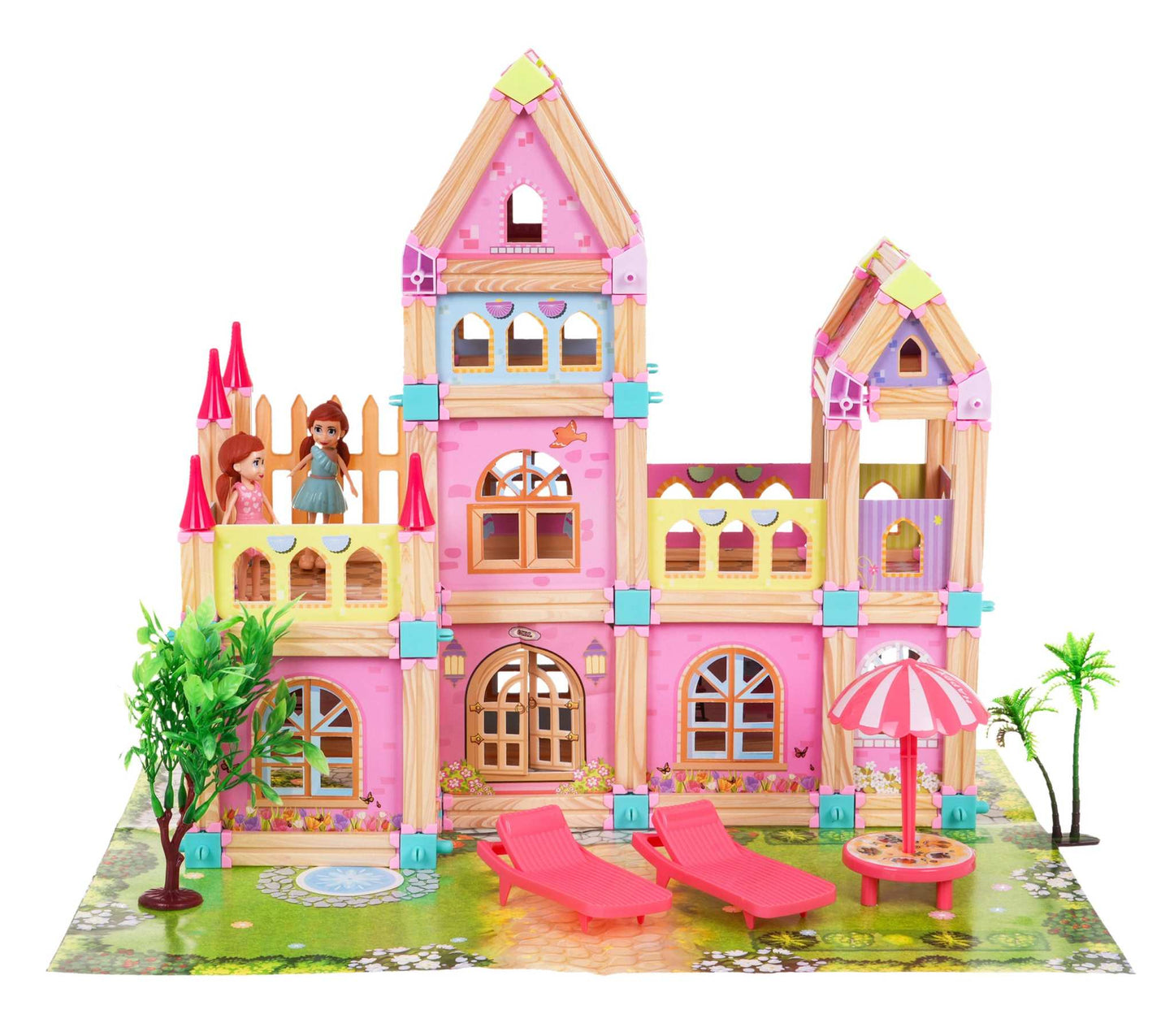 Drewniany Domek Księżniczek z 183 Elementami Dla Dzieci 3 Lat