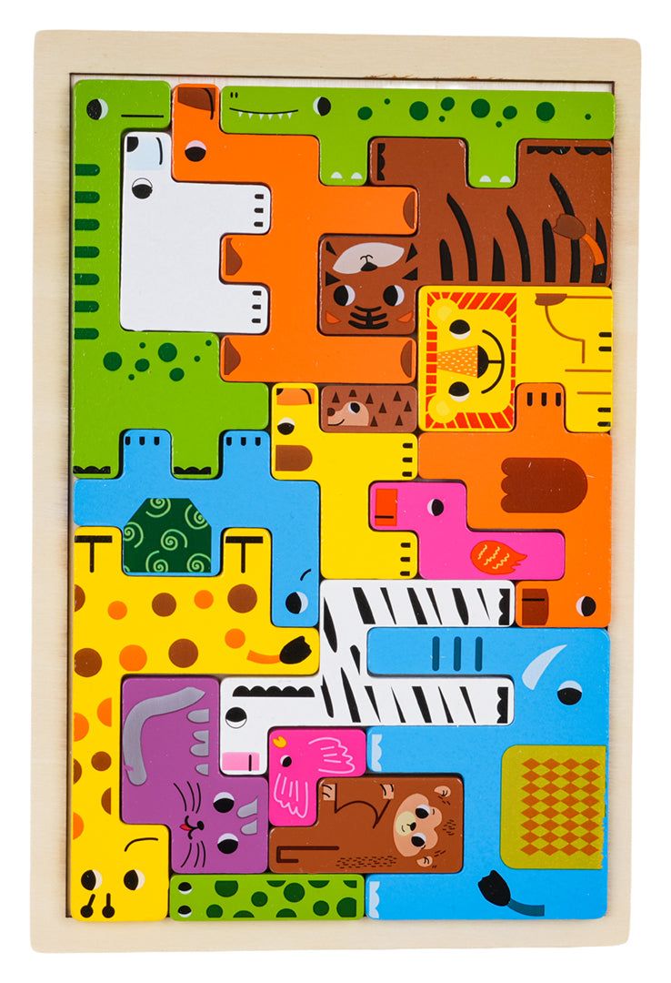 Drewniana Zestaw Puzzle Zwierząt Dla Dzieci Rozwija Zmysły