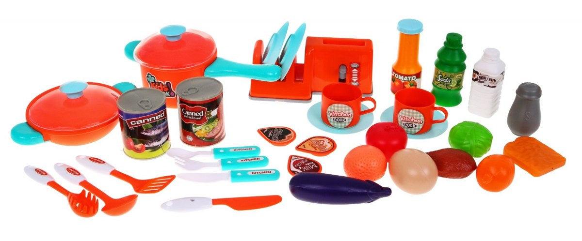 - Uatrakcyjnia zabawę okapem kuchennym i zestawem garnków oraz atrapy jedzenia w zestawie.