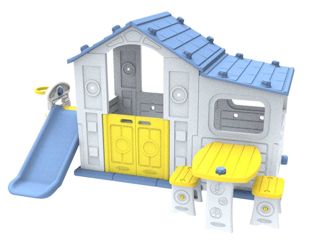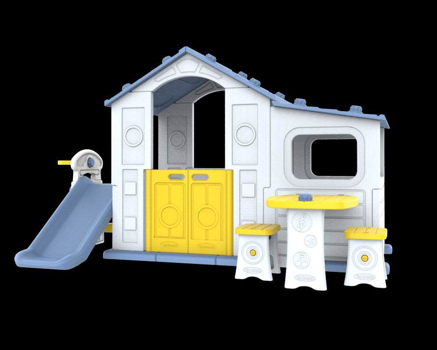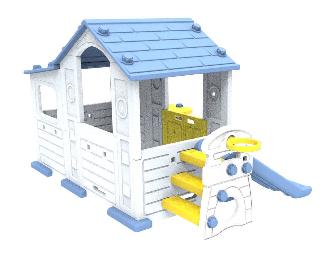Duży Domek Ogrodowy 4w1 z niebieskim dachem od Minika to doskonałe centrum zabaw na podwórku, które łączy zabawę na świeżym powietrzu z aktywnością ruchową. Wytrzymała konstrukcja z HDPE oraz przemyślany design zapewniają długą, bezpieczną zabawę dla całej rodziny, a prosty montaż ułatwia szybkie postawienie na ogrodowej przestrzeni.