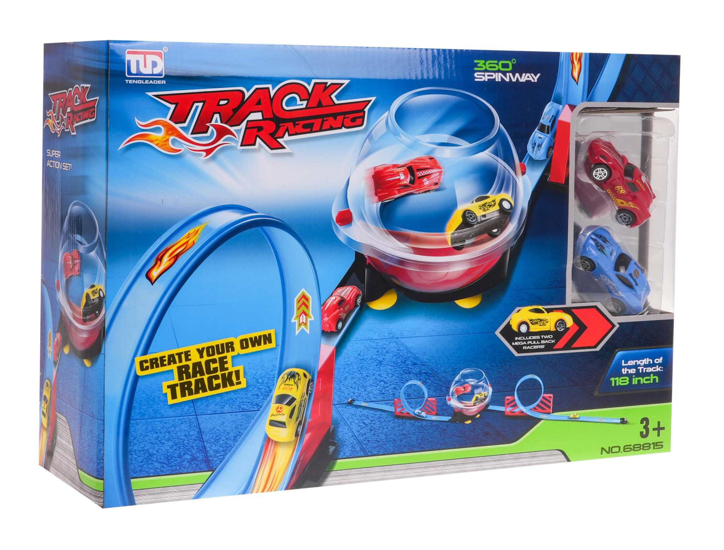- Korzystaj z dwóch autek z napędem pull-back, by rywalizować bez przeszkód.