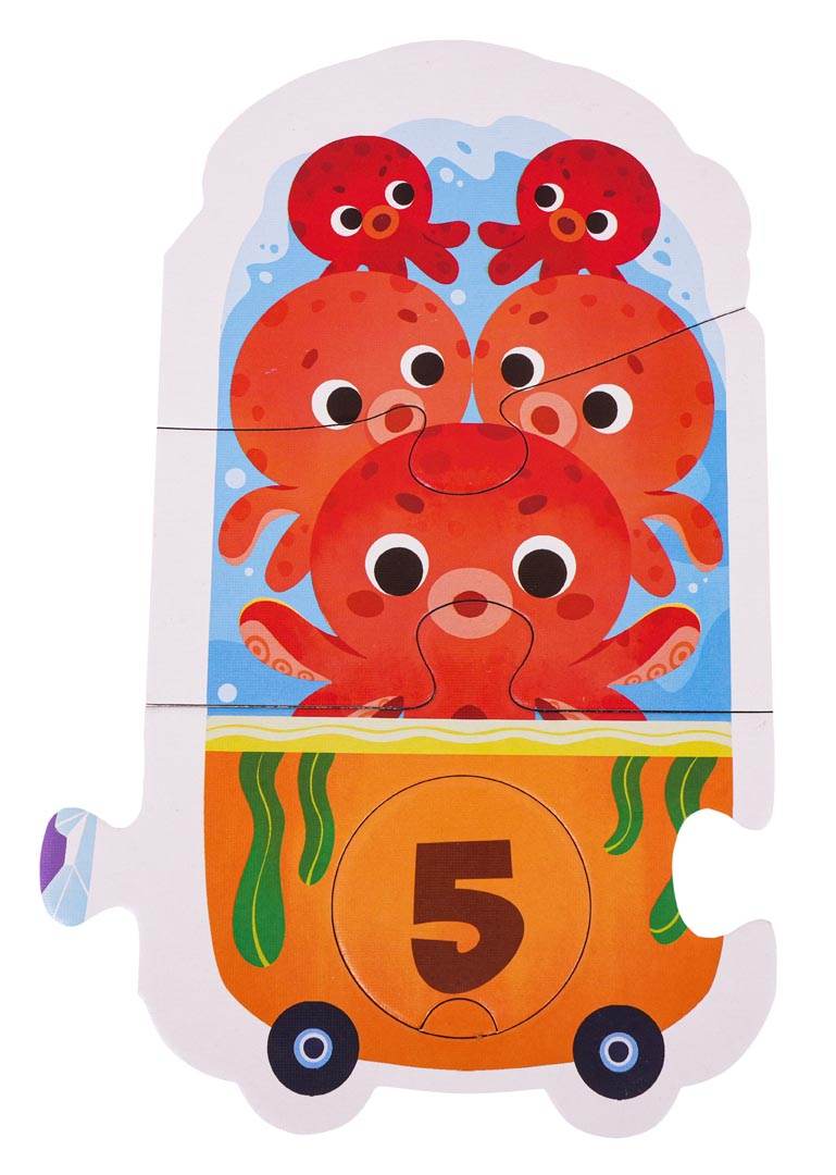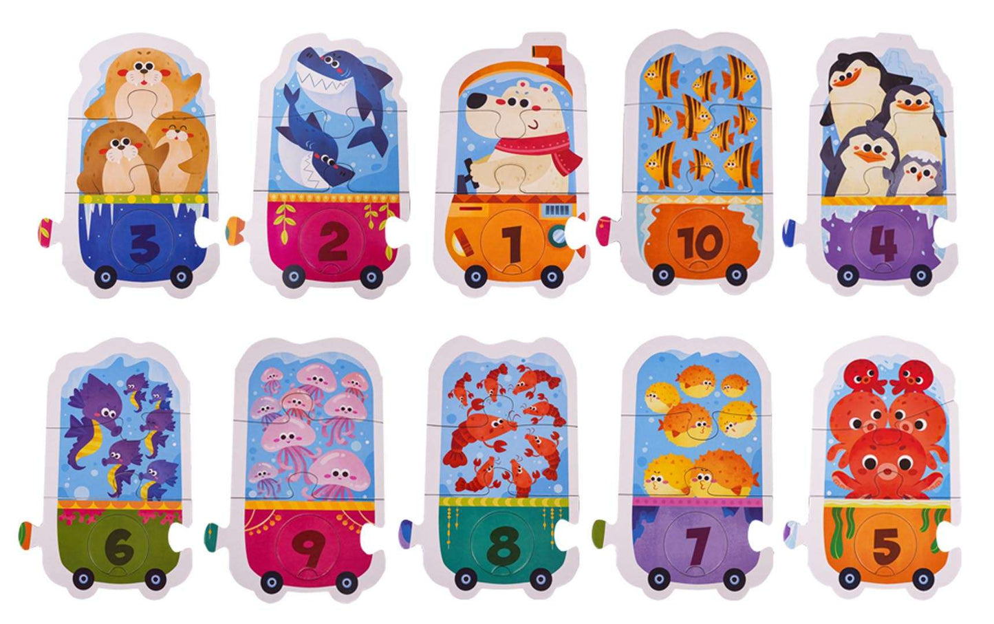 - Ułóż pełny pociąg z 10 wagoników, odkrywając rytm i zabawę w ruchu.
