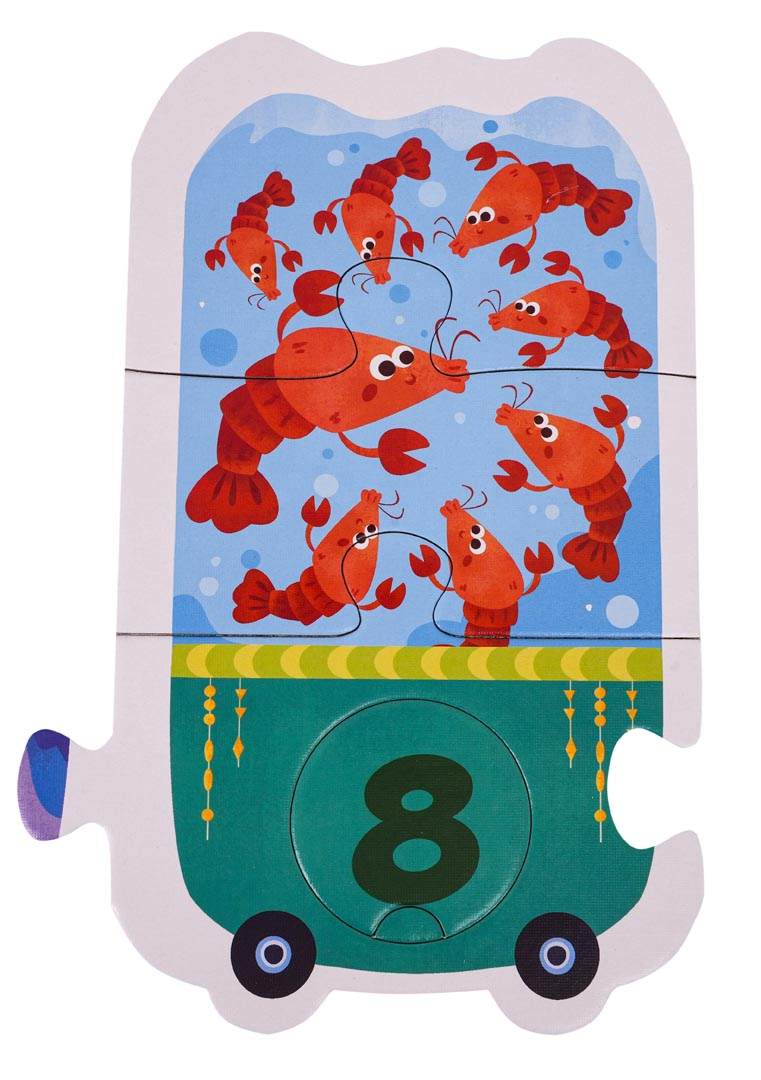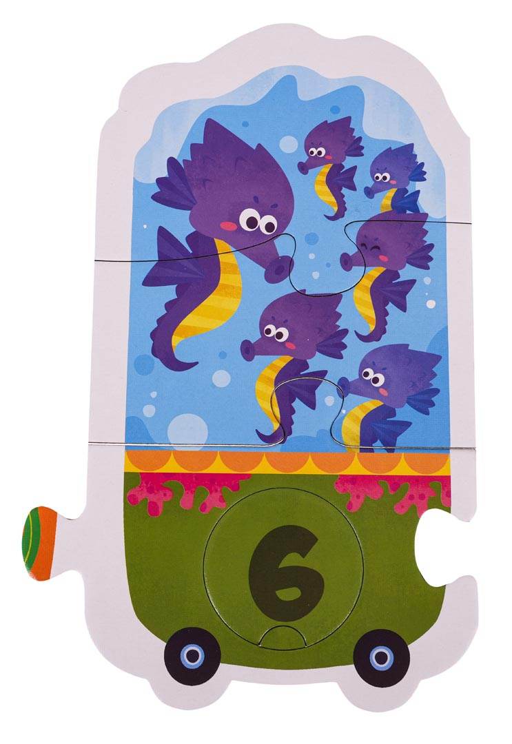- Dopasuj cyfry do odpowiadającej liczby zwierząt na każdym wagoniku, ćwicząc liczenie.