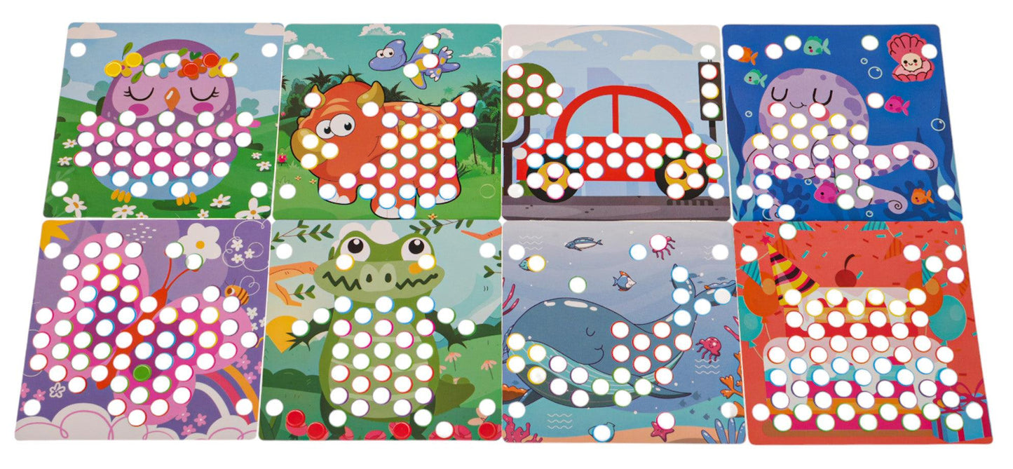 - Ćwicz precyzję ruchów, dopasowując każdy koralik do koloru na karcie.