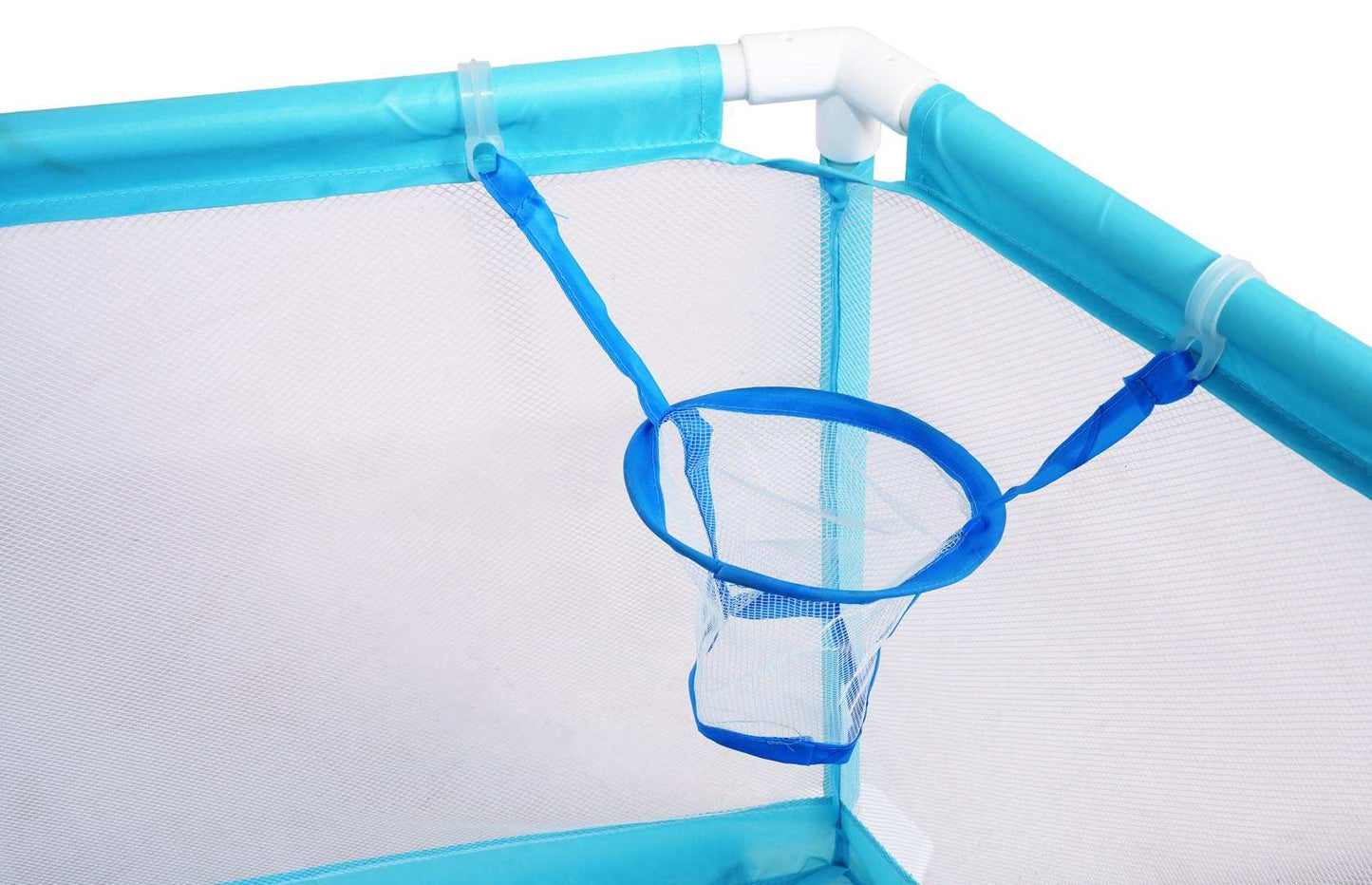 Care/fit: Przeznaczony dla dzieci od 3 lat. Lekka konstrukcja ułatwia przenoszenie i ustawianie w dowolnym miejscu. Materiał łatwy do czyszczenia zapewnia higienę zabaw po intensywnych sesjach na zewnątrz. Zestaw zawiera 50 piłeczek i mini koszykówkę, zapewniając wszechstronną zabawę od pierwszego użycia.