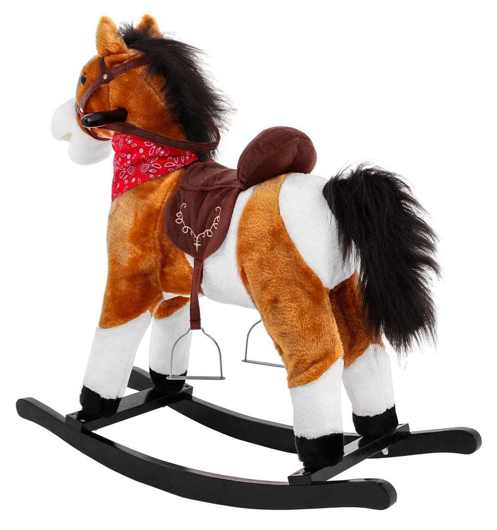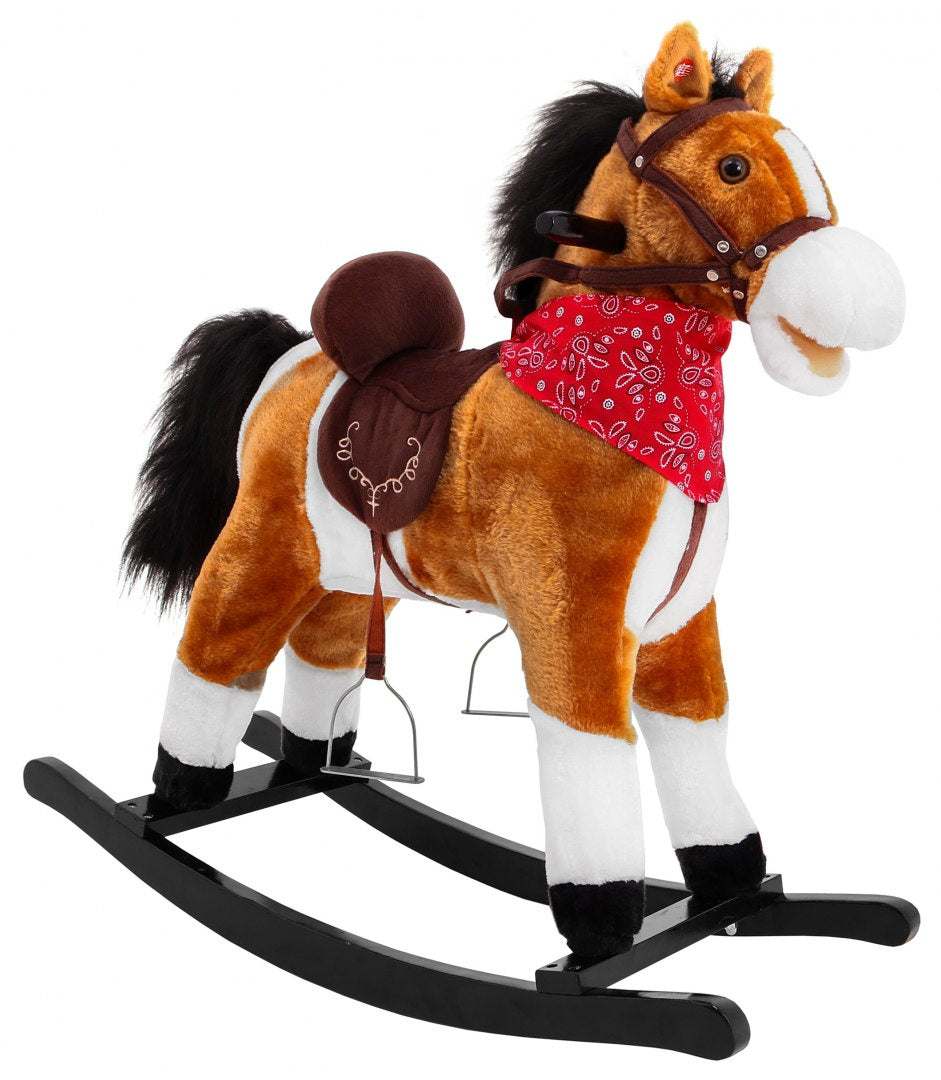 Konik Koń Na Biegunach Jasny Brąz z muzyką kowbojską od Minika to miękki, bezpieczny towarzysz zabaw dla dzieci od 3 lat. Pluszowy materiał jest przyjemny w dotyku, a klasyczny design z siodłem, lejce i bandaną dodaje charakteru każdej sesji kołysania. Z efektami dźwiękowymi i kowbojską piosenką zabawa nabiera rytmu i wyobraźni w domowym pokoju.