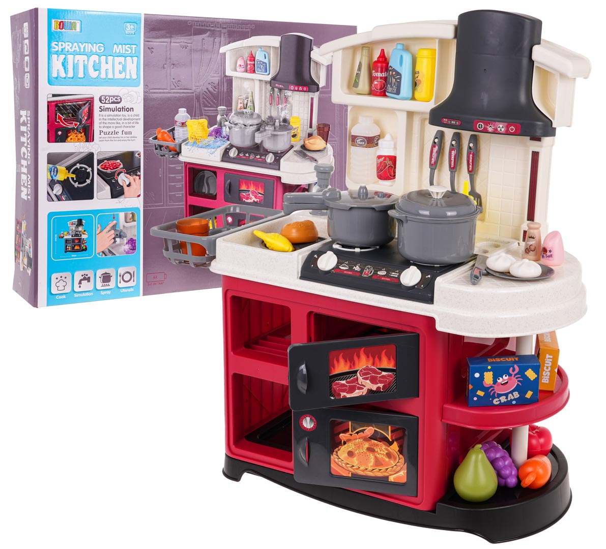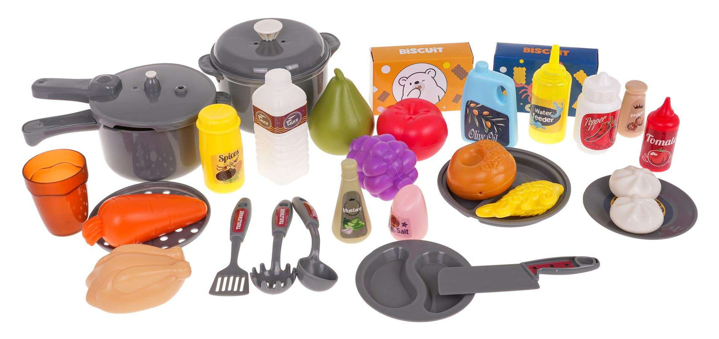 - Zawiera 52 elementy zestawu akcesoriów i naczyń, tworząc kompletną scenę gotowania.