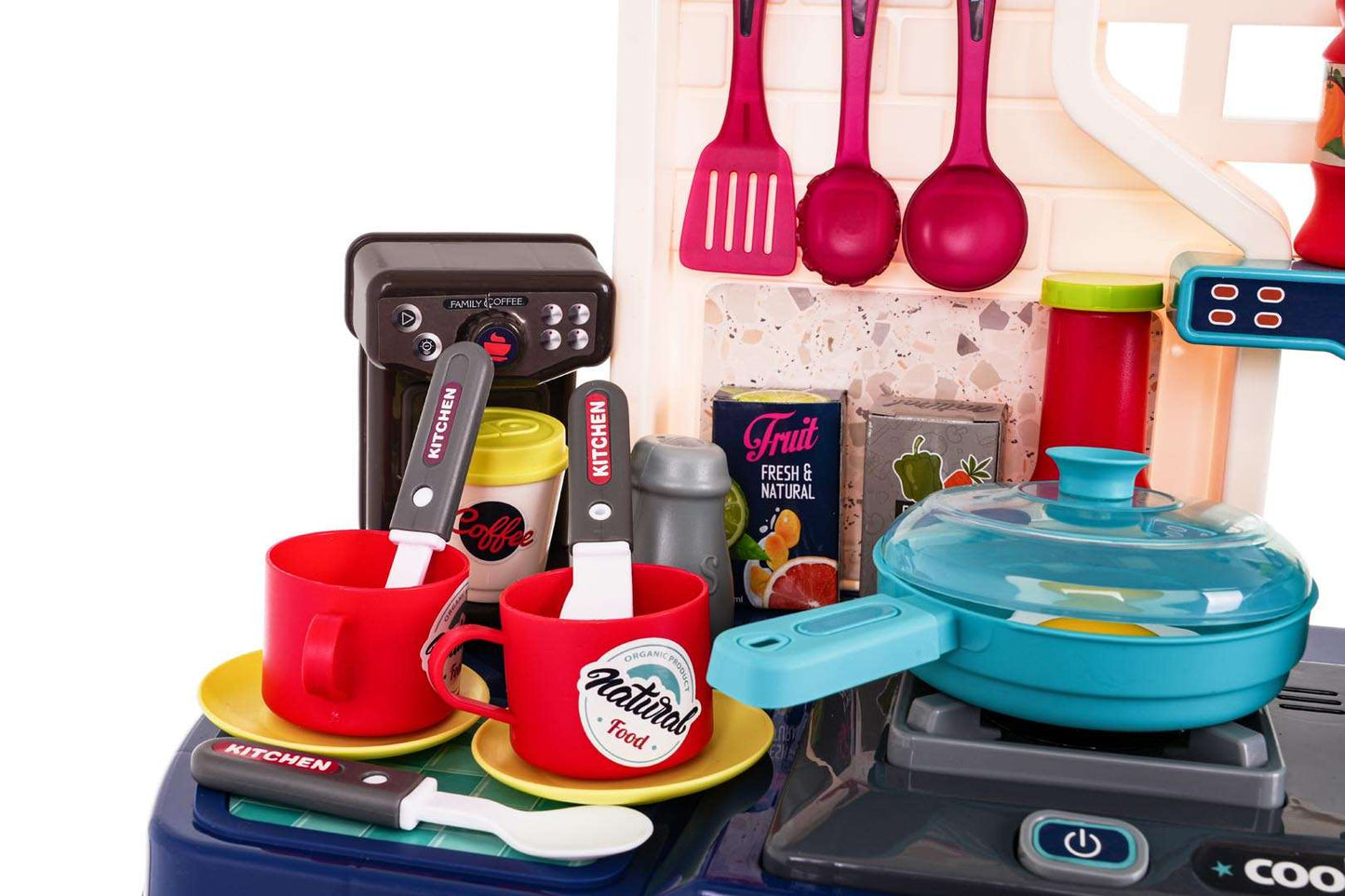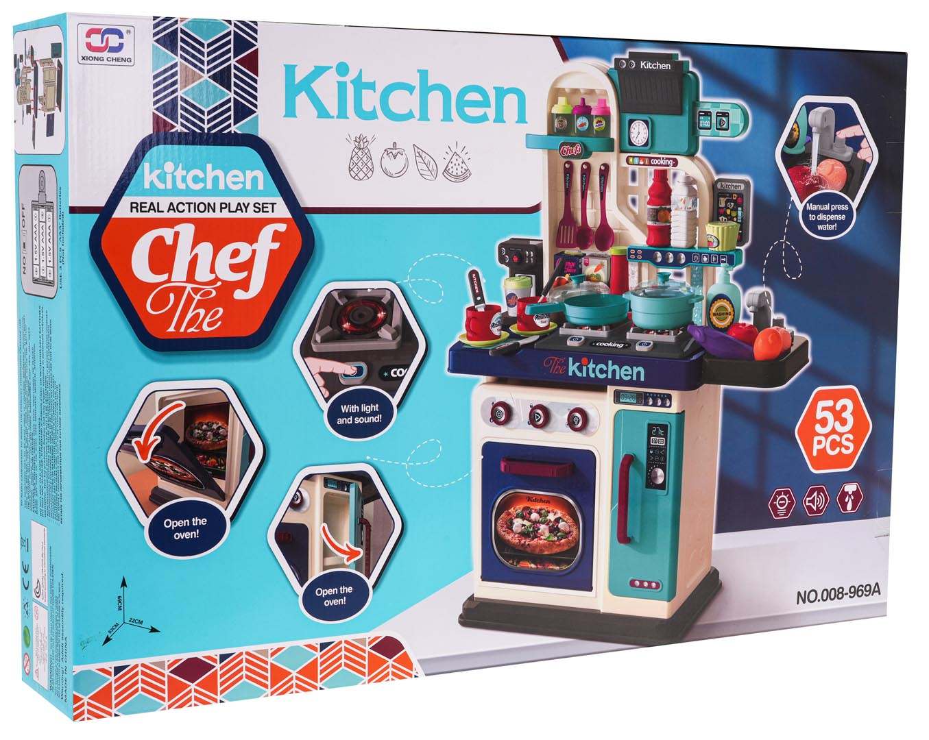 Dopasowanie: Produkt przeznaczony dla dzieci od 3 roku życia. Zestaw zawiera 53 elementy wykonane z wysokiej jakości plastiku. Zabawka rozwija wyobraźnię i zdolności manualne, a interaktywne funkcje światła, dźwięku i wody zachęcają do długiej, kreatywnej zabawy w kuchnię.