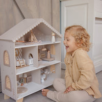 Elegancki domek dla lalek z rattanowymi akcentami to wyjątkowe połączenie zabawki i stylowej dekoracji pokoju. Modne detale przy oknach sprawiają, że domek doskonale komponuje się z wystrojem wnętrza, dodając uroku każdemu kącikowi zabaw. Kompletne wyposażenie w zestawie: