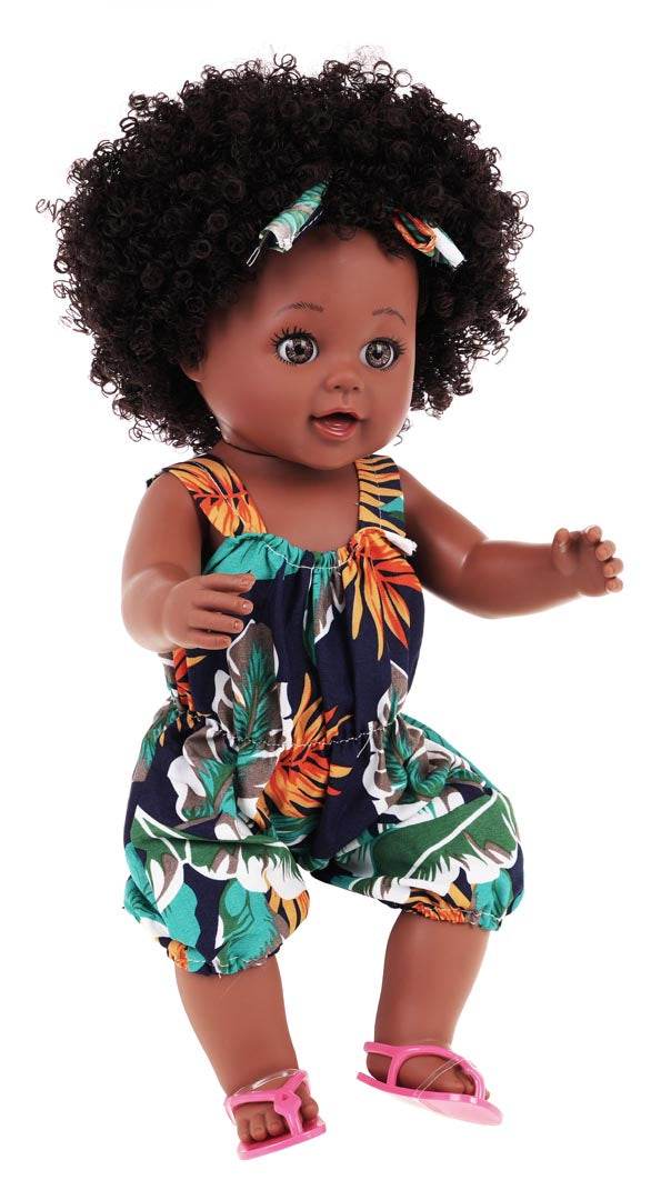 - Przebieraj lalkę, korzystając z zestawu garderoby: letni kombinezon, sandałki i opaska na włosy.
