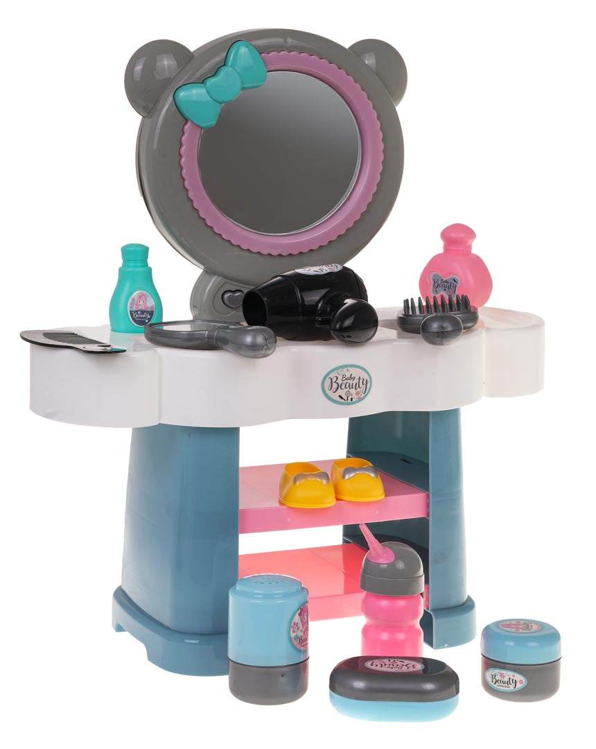 - Stymuluje rozwój motoryki małej poprzez manipulowanie lalką i akcesoriami oraz korzystanie z elementów toaletki.