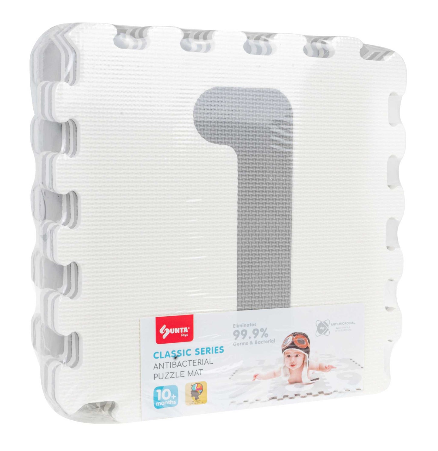 Mata Puzzle Edukacyjna Antybakteryjna Dla Dzieci 10m od Minika to kolorowa mata edukacyjna, która łączy zabawę z nauką liczb i liter. Wykonana z lekkiej pianki EVA, zapewnia miękkość i amortyzację, a antybakteryjna powłoka Ag+ ogranicza rozwój bakterii na powierzchni. Biało-szary design pasuje do każdej aranżacji pokoju dziecka, a wyjmowane cyfry i litery wspierają rozwój motoryki dłoni oraz koordynację wzrokowo-ruchową.