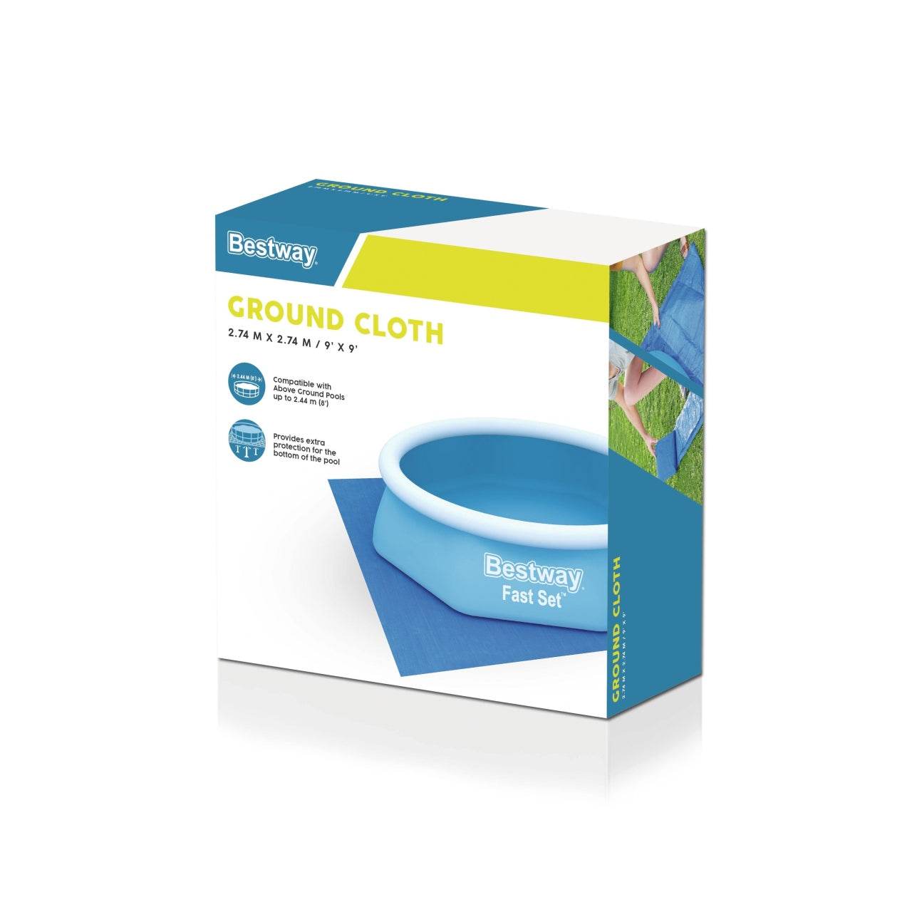 Rozmiar i dopasowanie: Rzeczywiste wymiary 274 x 274 cm, dopasowanie do basenu BESTWAY o średnicy 244 cm (8 ft). Waga zestawu ok. 0,7 kg. Prosty montaż i łatwe przenoszenie zapewniają wygodę użytkowania przez cały sezon.