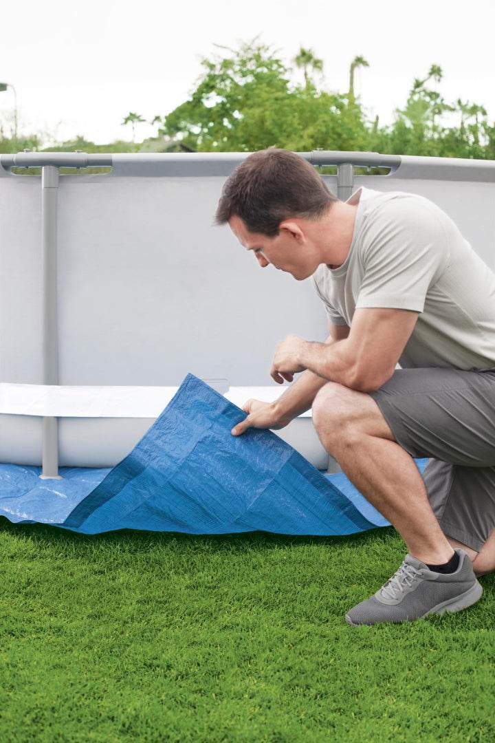 - Dopasowuje się do basenów o średnicy 457 cm (16 ft), zapewniając stabilność i pełną ochronę dna.