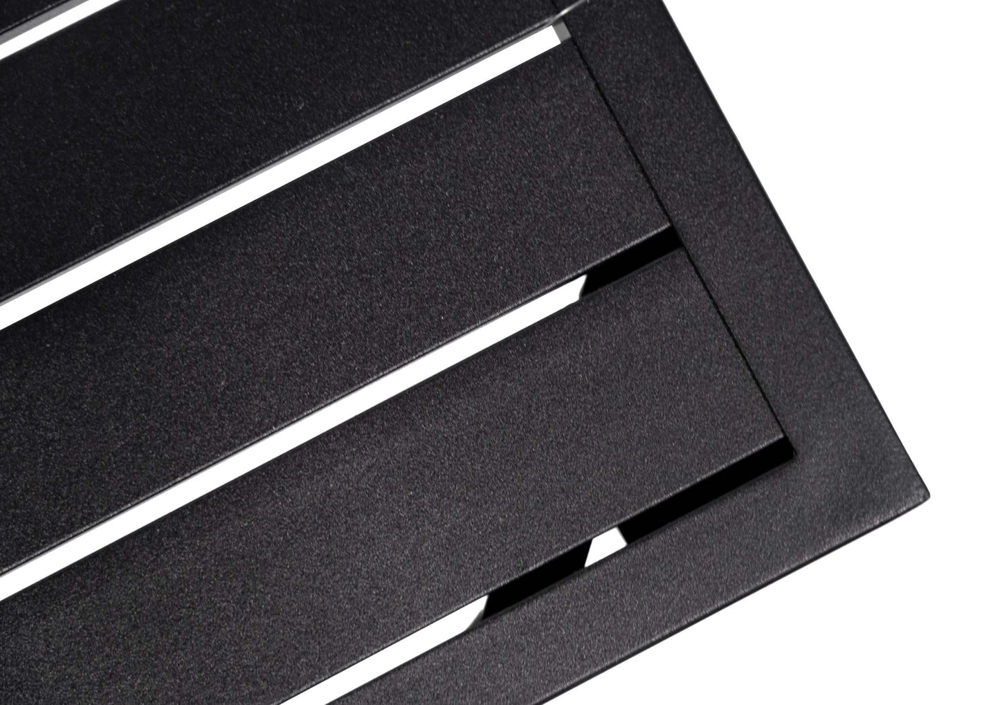 - Utrzymuje porządek dzięki lekkiej, aluminiowej konstrukcji odpornej na warunki atmosferyczne.