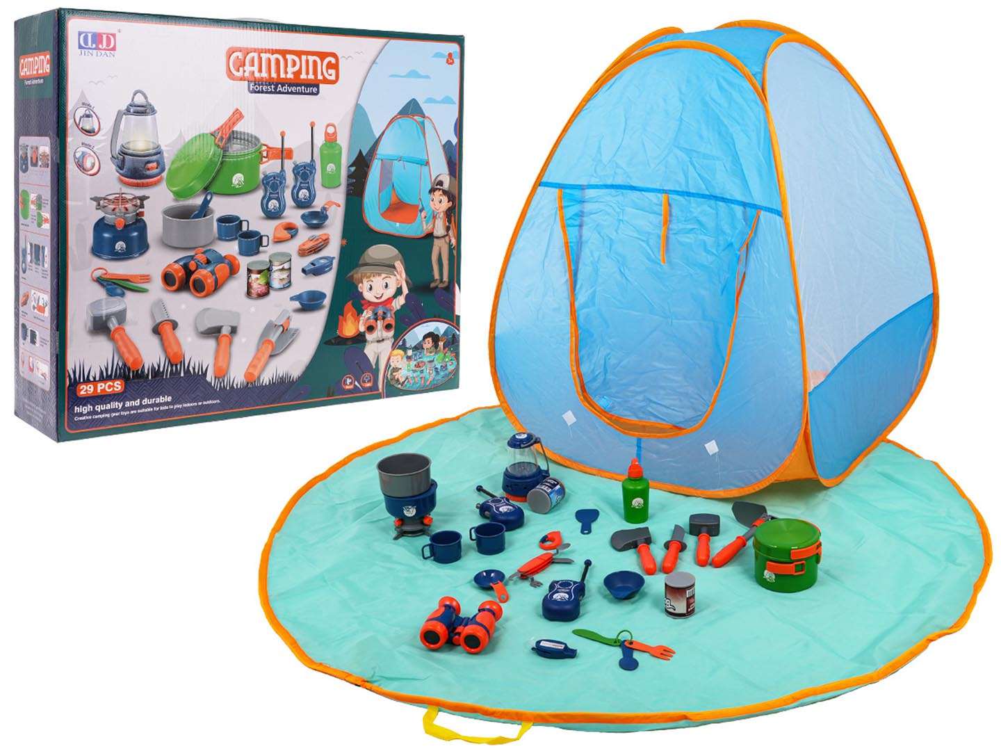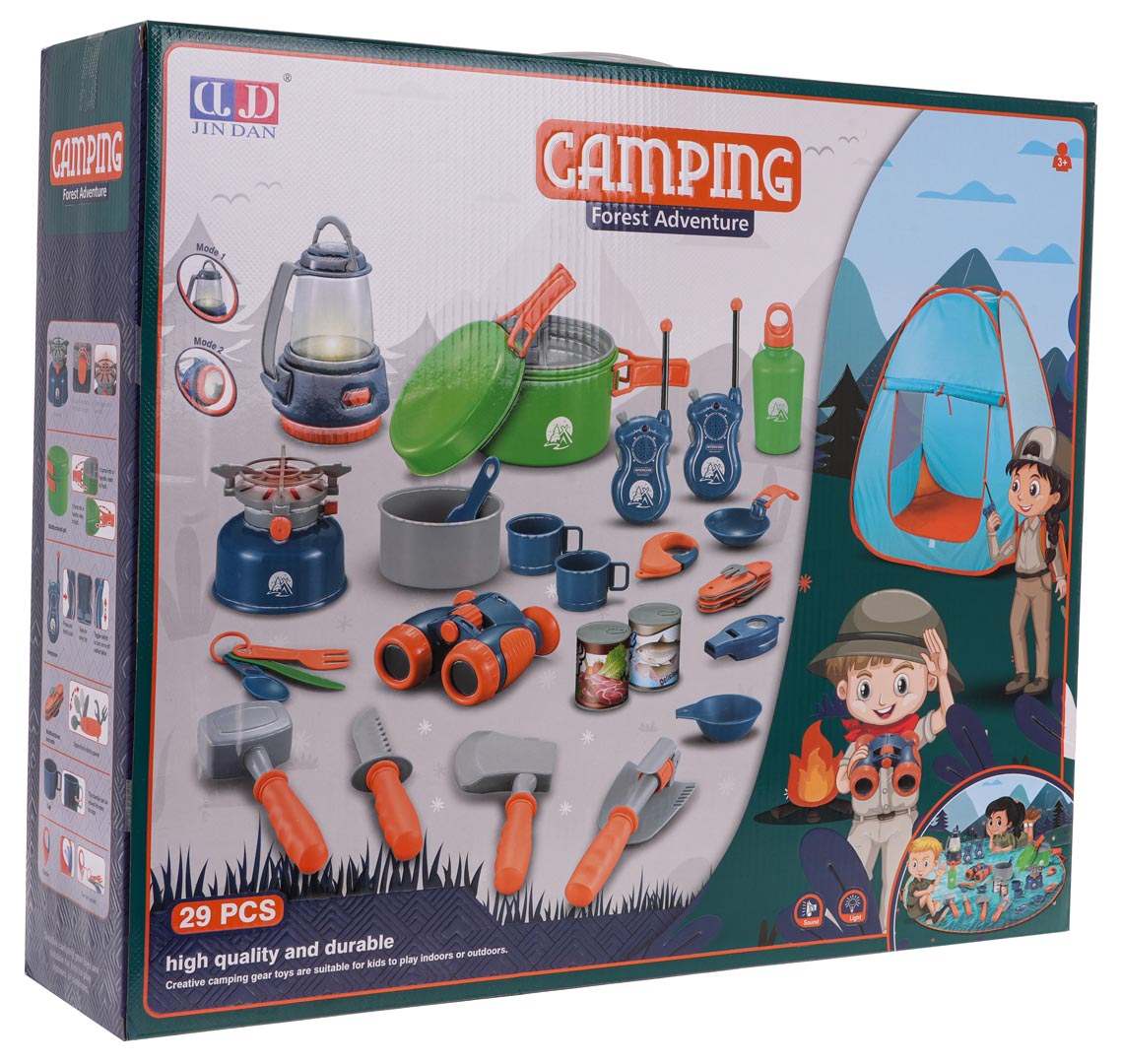 - Ułatwiaj codzienną zabawę dzięki kompletnej zawartości: namiot, mata, kuchenka i akcesoria.