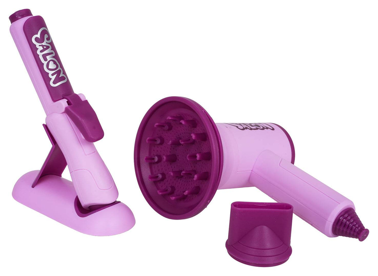 - Twórz wyjątkowe fryzury dzięki realistycznym akcesoriom, takim jak suszarka z wymiennymi końcówkami, prostownica i grzebienie.