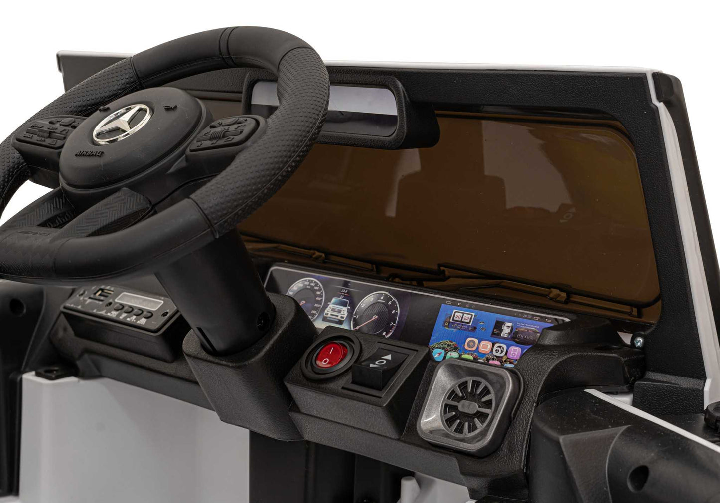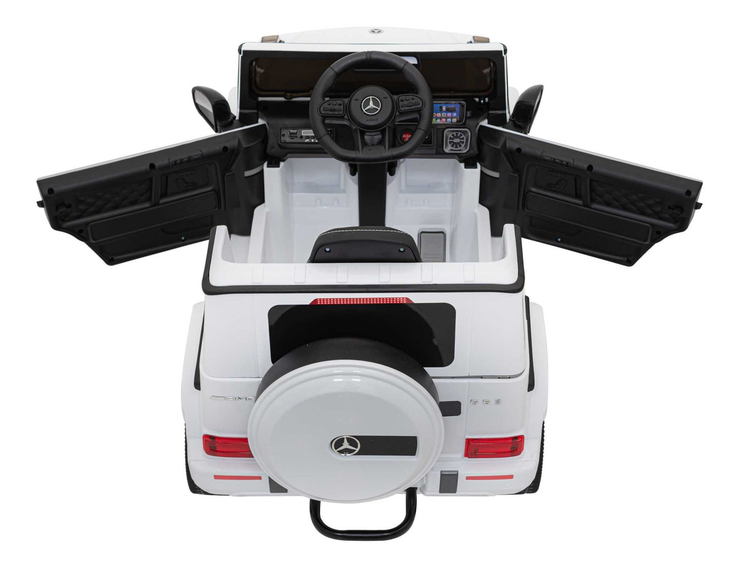 Mercedes AMG G63 dla dzieci – Biały z Pilotem to stylowy, bezpieczny pojazd na akumulator 12V, który zamienia zabawę w realistyczną jazdę. Dzięki pilotowi zdalnego sterowania 2,4 GHz łatwo przejmiesz kontrolę, a młody kierowca cieszy się samodzielnością i autentycznymi doznaniami z jazdy.