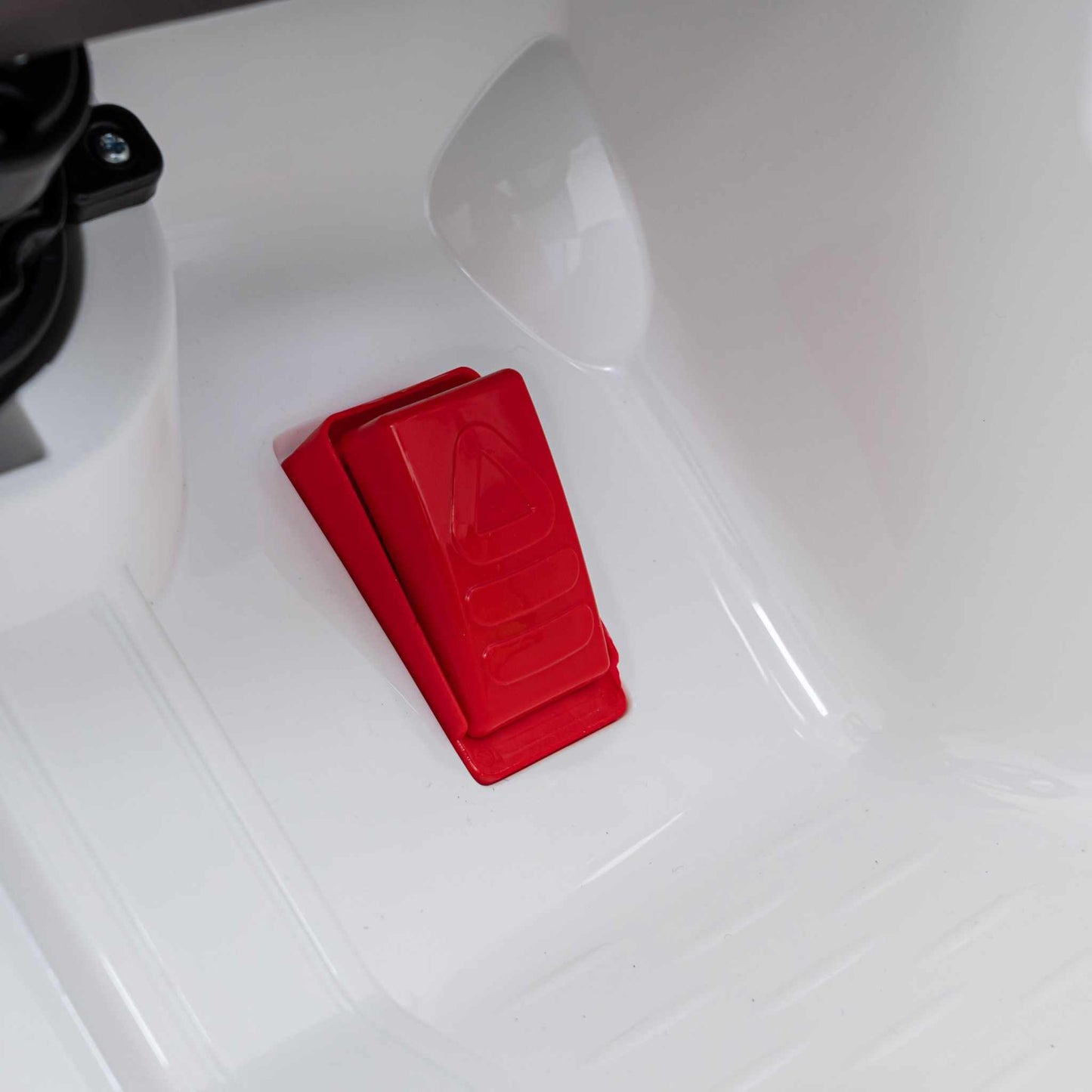 Dopasowanie / rozmiar: konstrukcja została zaprojektowana z myślą o młodych, aktywnych użytkownikach: niski profil, stabilna baza i łatwy dostęp do kierownicy zapewniają bezpieczne wejście i pewne prowadzenie. Dzięki 5-punktowym pasom, przyciskowi Stop i regulowanym prędkościom zabawa pozostaje komfortowa na różnych nawierzchniach.