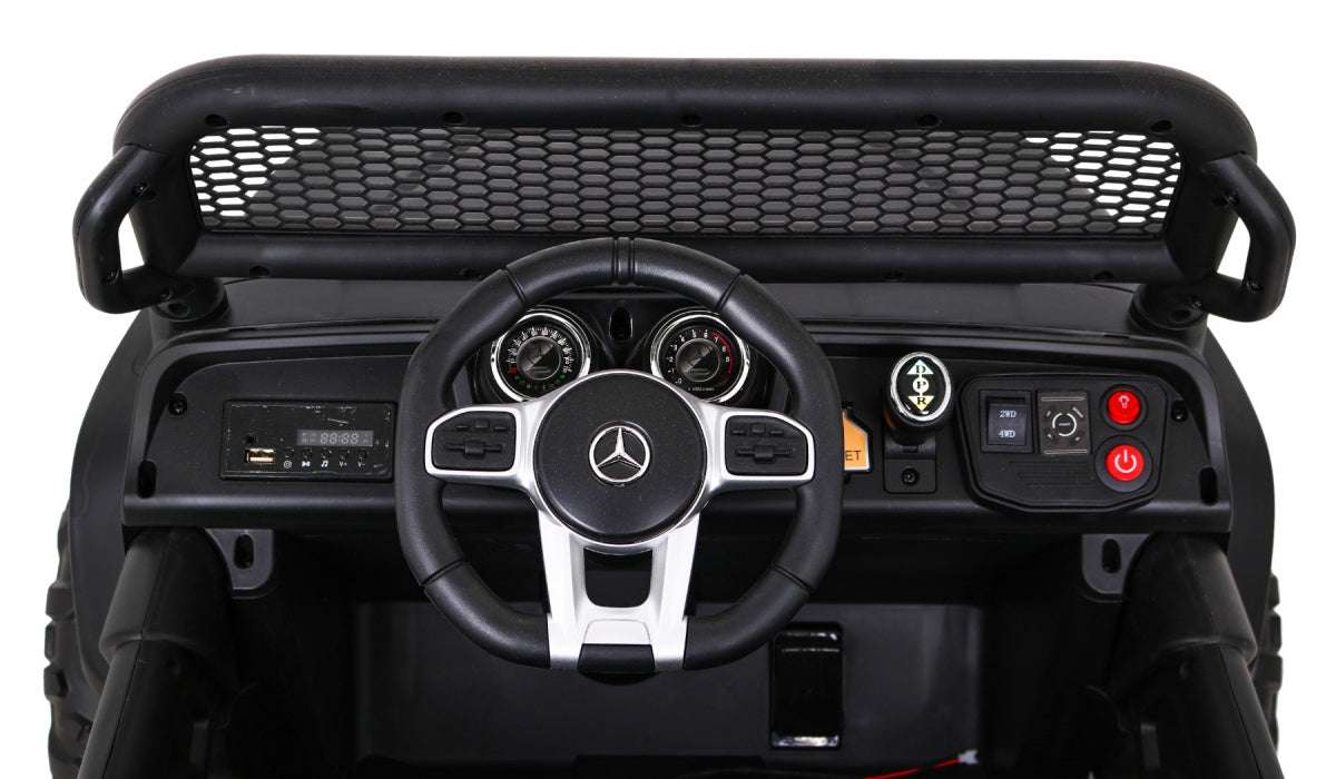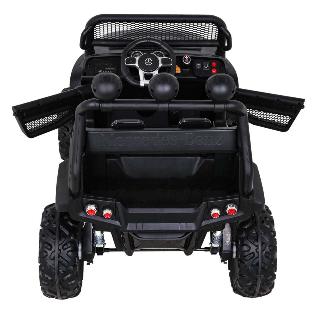 - Oferuje realistyczny wygląd Mercedesa Unimoga z LED-owymi światłami i możliwością jazdy do przodu i do tyłu.