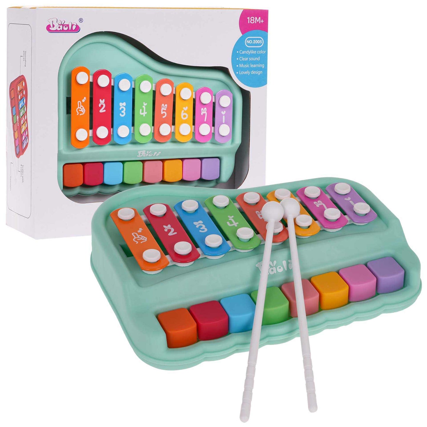 Pianinko Cymbałki Zielone Zestaw 2w1 Dla Dzieci 18 Miesięcy