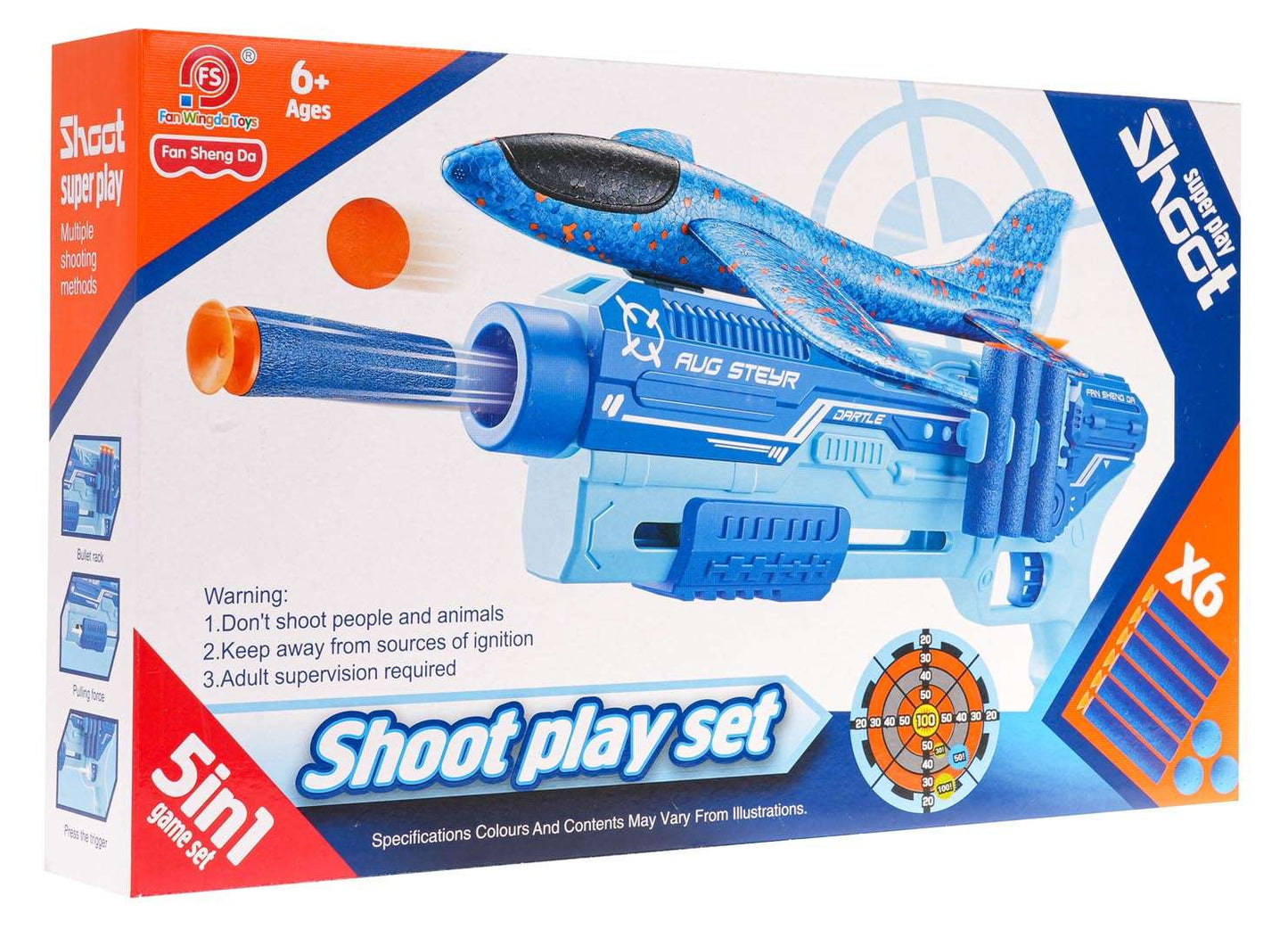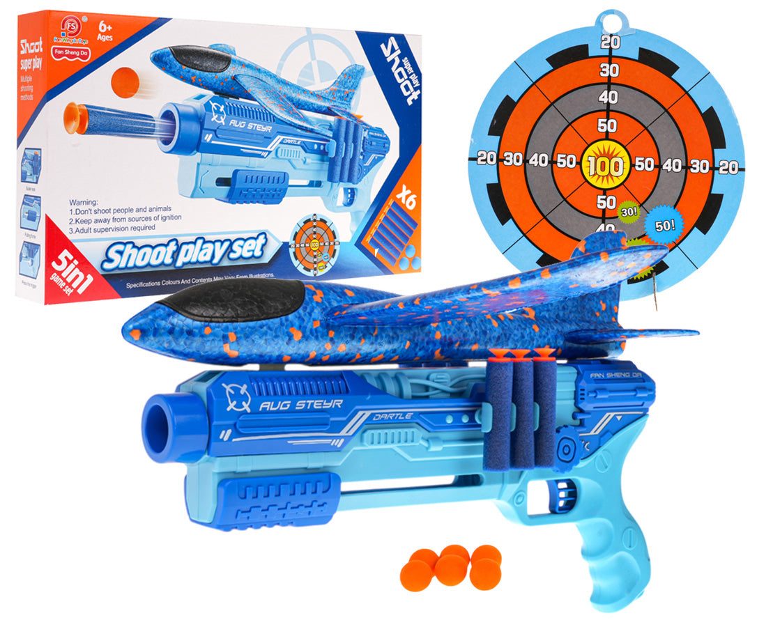 Pistolet Z Wyrzutnią Samolotową 5w1 Niebieski Dla Dzieci
