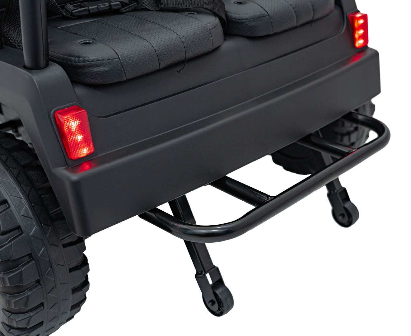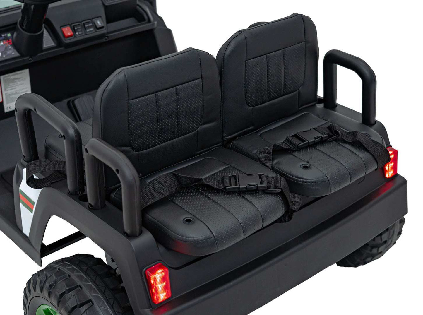 Rozmiar i dopasowanie: Czteroosobowy pojazd zapewnia rodzinną jazdę; wyposażony w pasy bezpieczeństwa oraz prostą obsługę prowadzenia, dopasowuje zabawę do umiejętności dziecka i opiekuna.