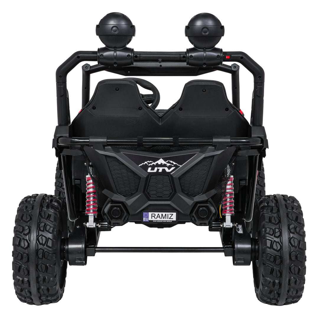 - Zasilany akumulatorami 24V (12V x2) gwarantuje odpowiednią moc i długi czas zabawy.