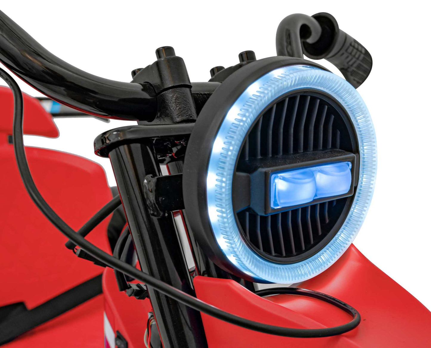 - Wyposażony w diody LED przednie, które podkreślają styl i poprawiają widoczność podczas zabaw wieczornych.