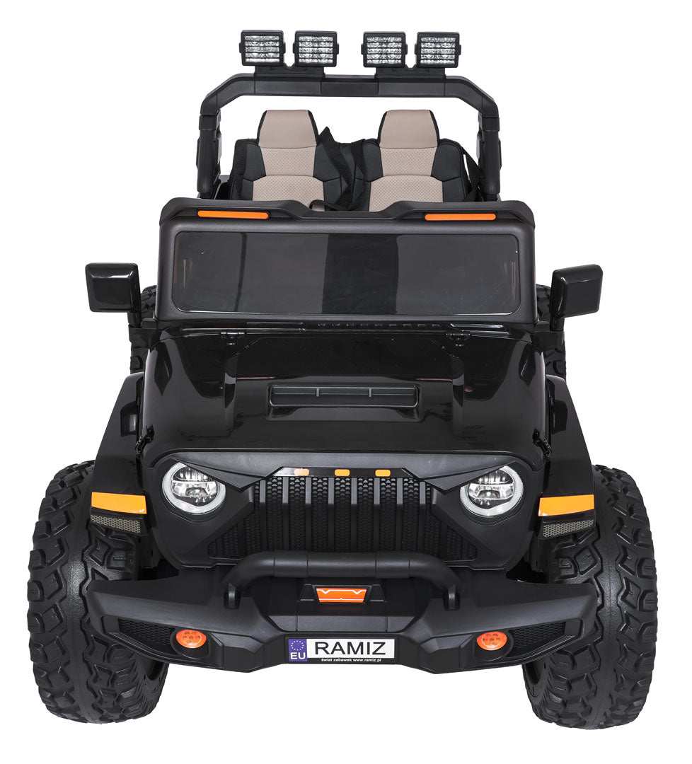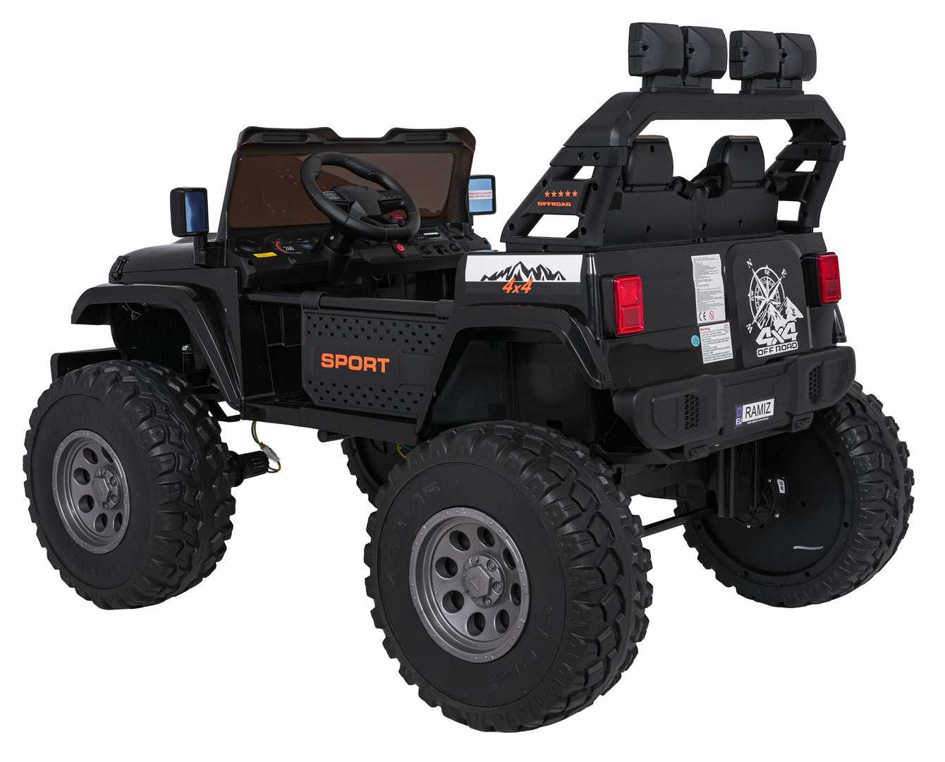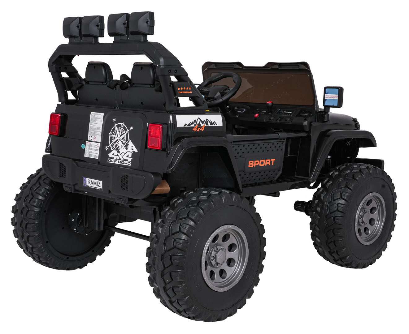 - Dodaje realizmu dzięki światłom LED (przednie, tylne i górne), komfortowym piankowym kołom EVA 40×14 cm oraz dwóm tylnym amortyzatorom, a także realistycznym detalom karoserii i agresywnemu wyglądowi.