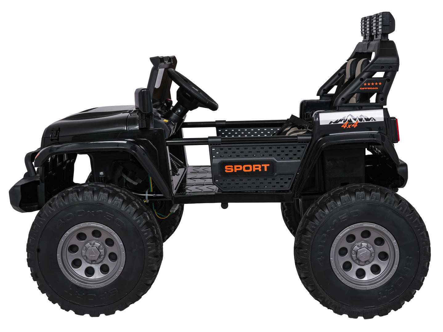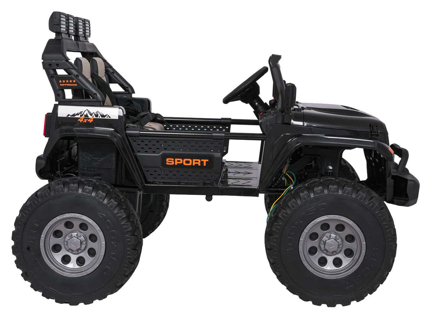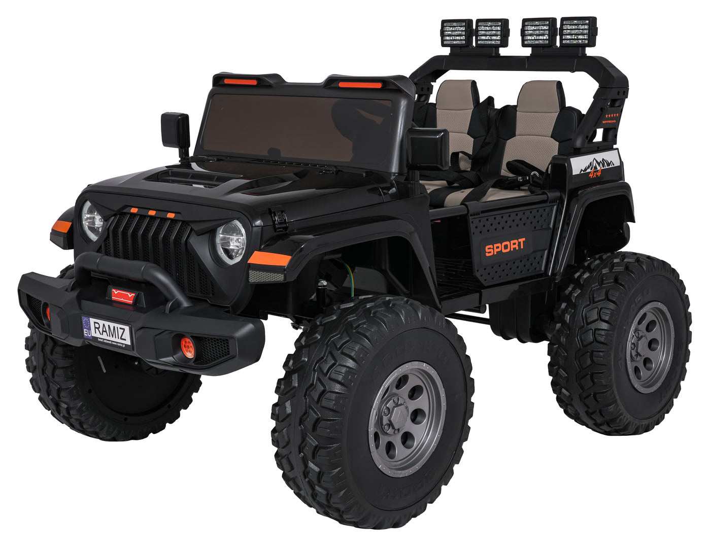 - Dodaje realizmu dzięki światłom LED (przednie, tylne i górne), komfortowym piankowym kołom EVA 40×14 cm oraz dwóm tylnym amortyzatorom, a także realistycznym detalom karoserii i agresywnemu wyglądowi.