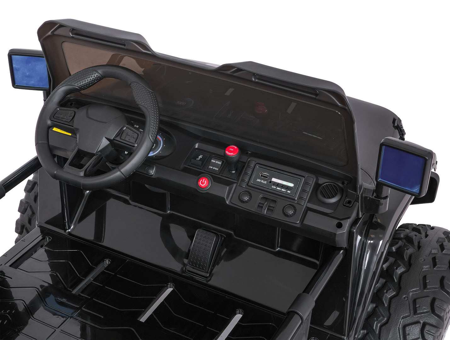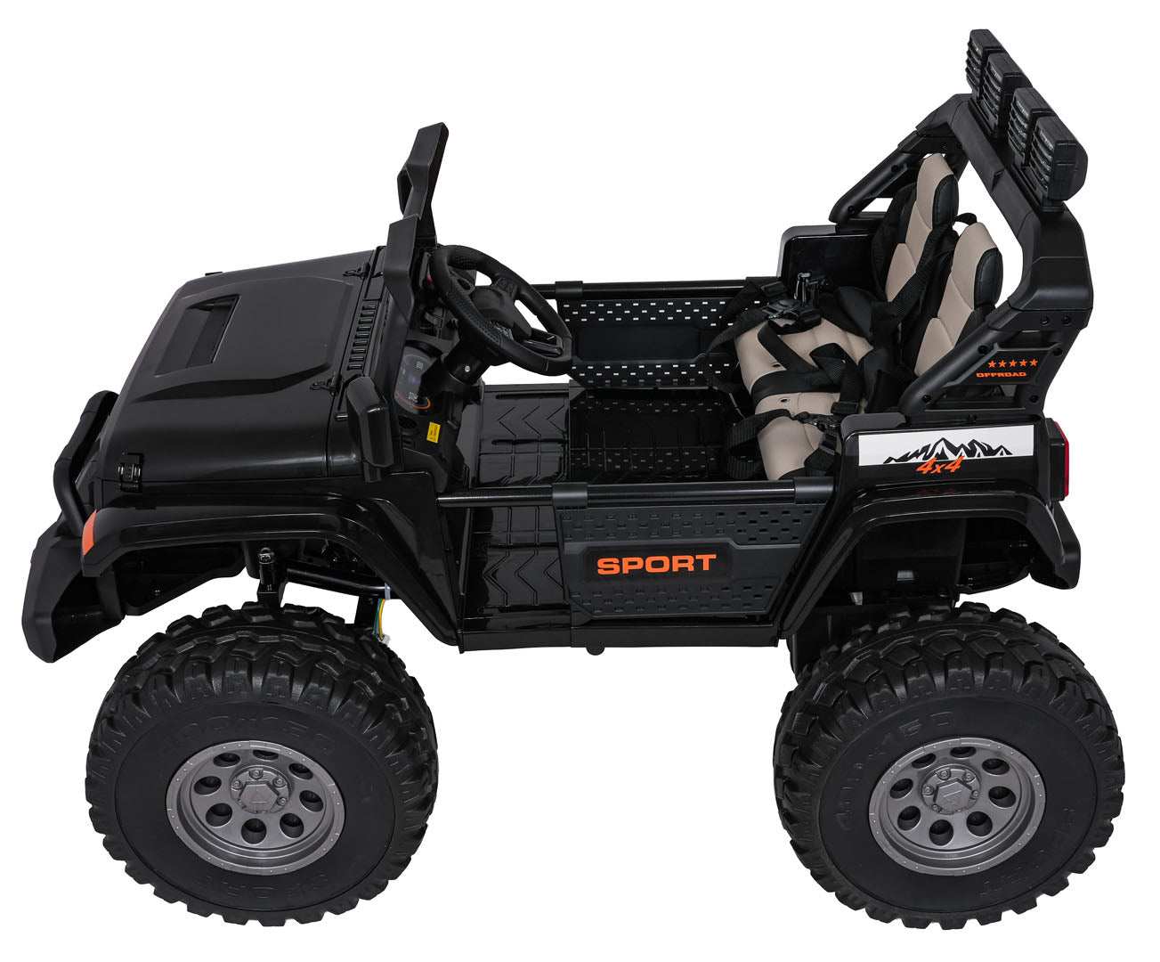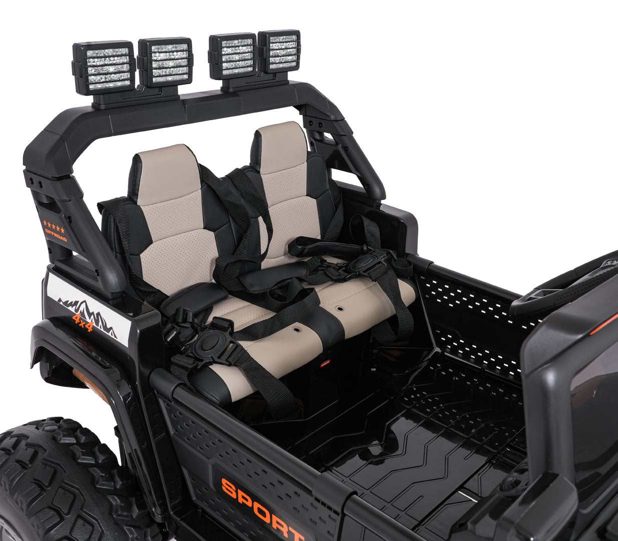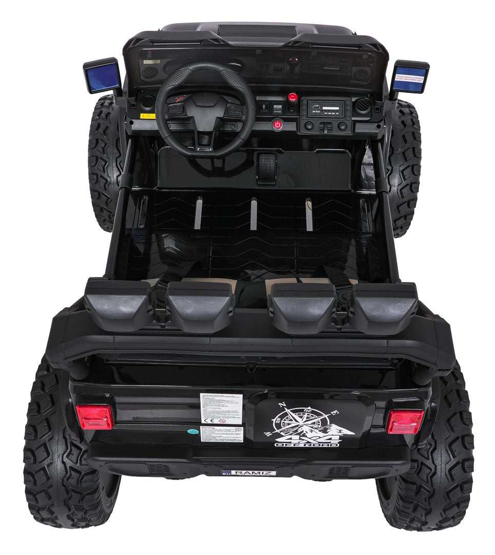 - Wydłuża zabawę dzięki podwójnemu zestawowi zasilania (2×12V7Ah) z możliwością szybkiego doładowania, co redukuje przestój i pozwala cieszyć się dłuższą jazdą.