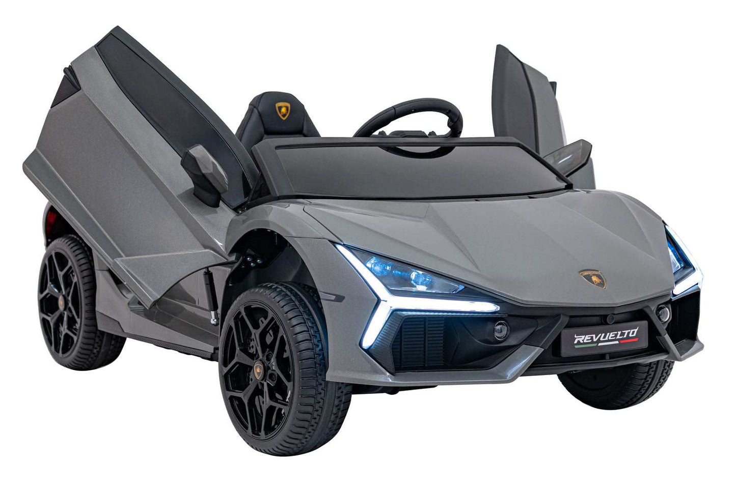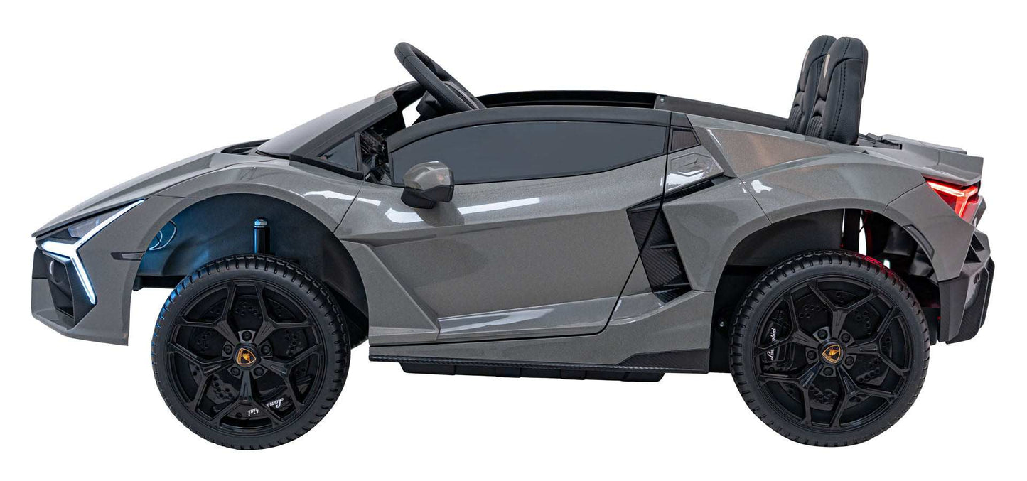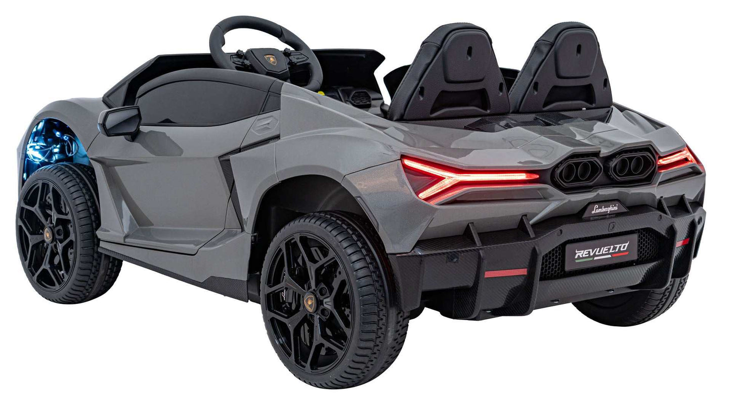 Poznaj Lamborghini Revuelto XL Dla Dzieci Szary — elektryczny pojazd, który łączy realistyczny wygląd superauta z bezpieczną, pełną emocji zabawą na podwórku. Dzięki napędowi 4 silników po 200 W każdy i akumulatorowi 24 V 7 Ah jazda jest dynamiczna, a pilot zdalnego sterowania 2,4 GHz pozwala rodzicom mieć kontrolę podczas zabawy.