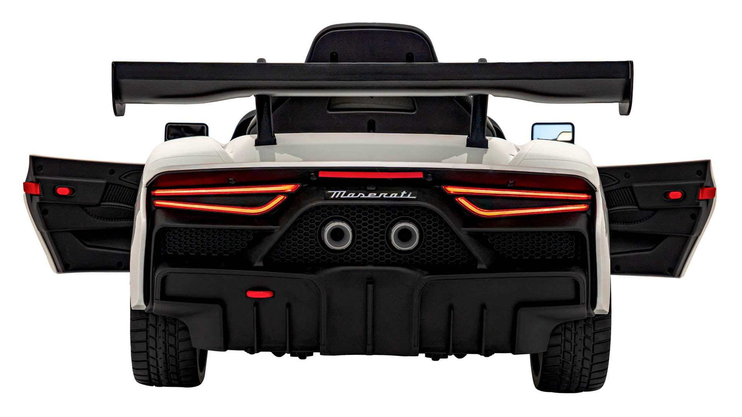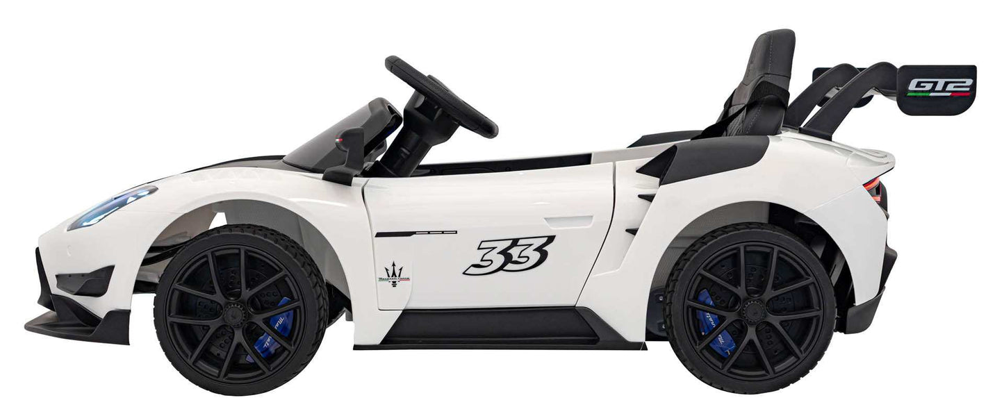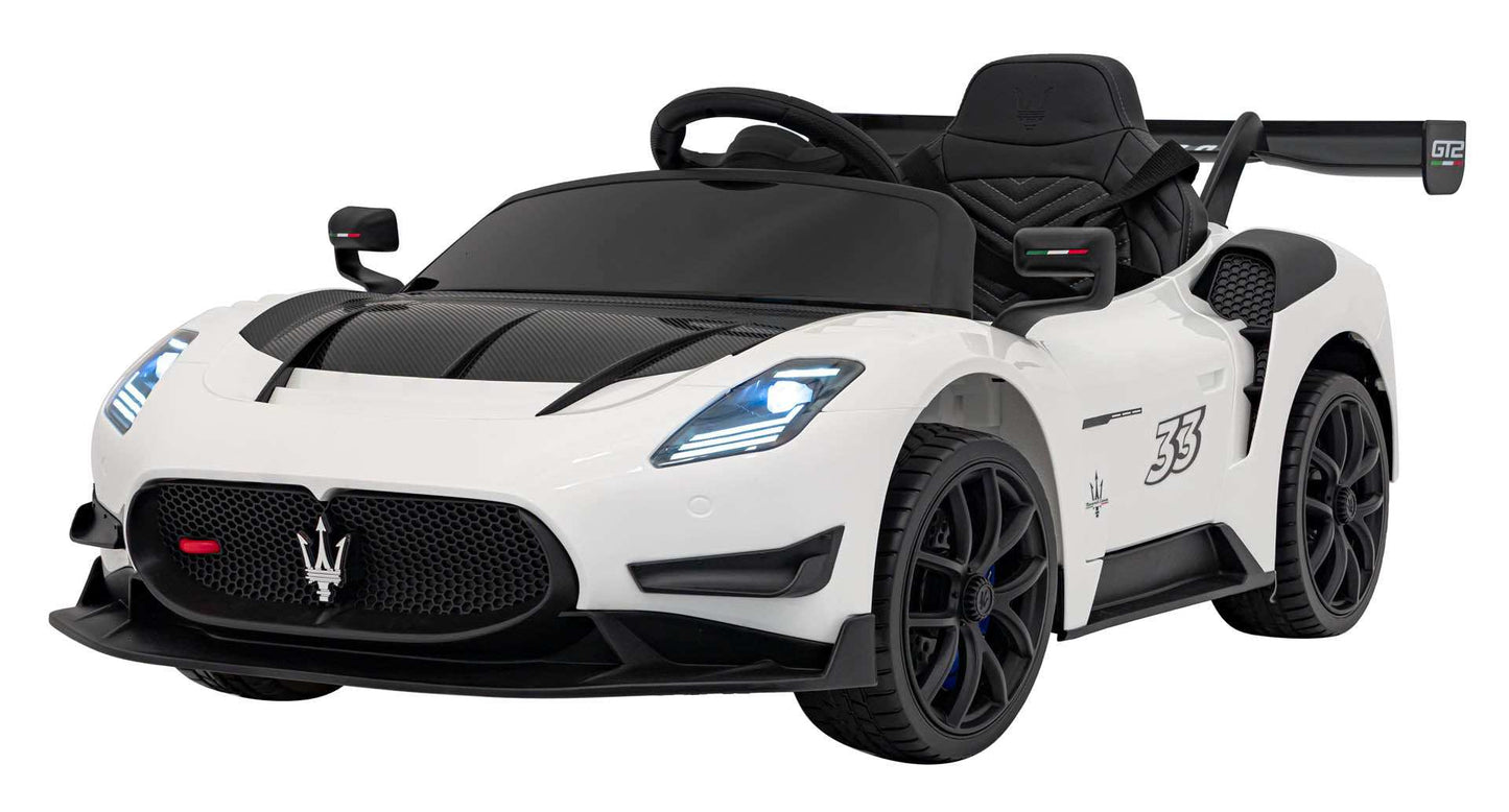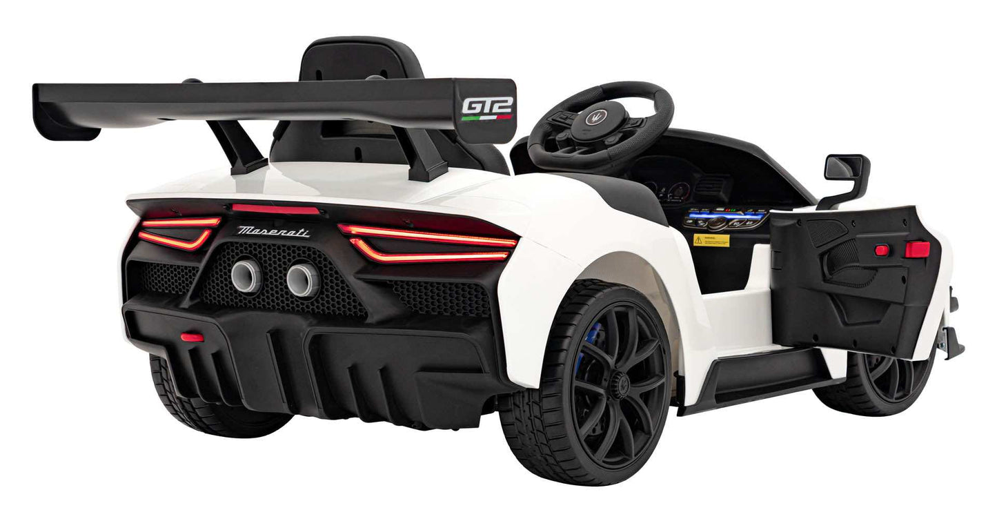 Pojazd Maserati MC20 GT2 Biały to elektryczny pojazd dziecięcy, łączący realistyczny, sportowy design Maserati z bezpieczną i prostą obsługą zabawy. Dzięki baterii 12V/7Ah i dopracowanym detalom mali kierowcy poczują się jak wyścigowcy, a rodzice mają pewność, że zabawa jest pod kontrolą.